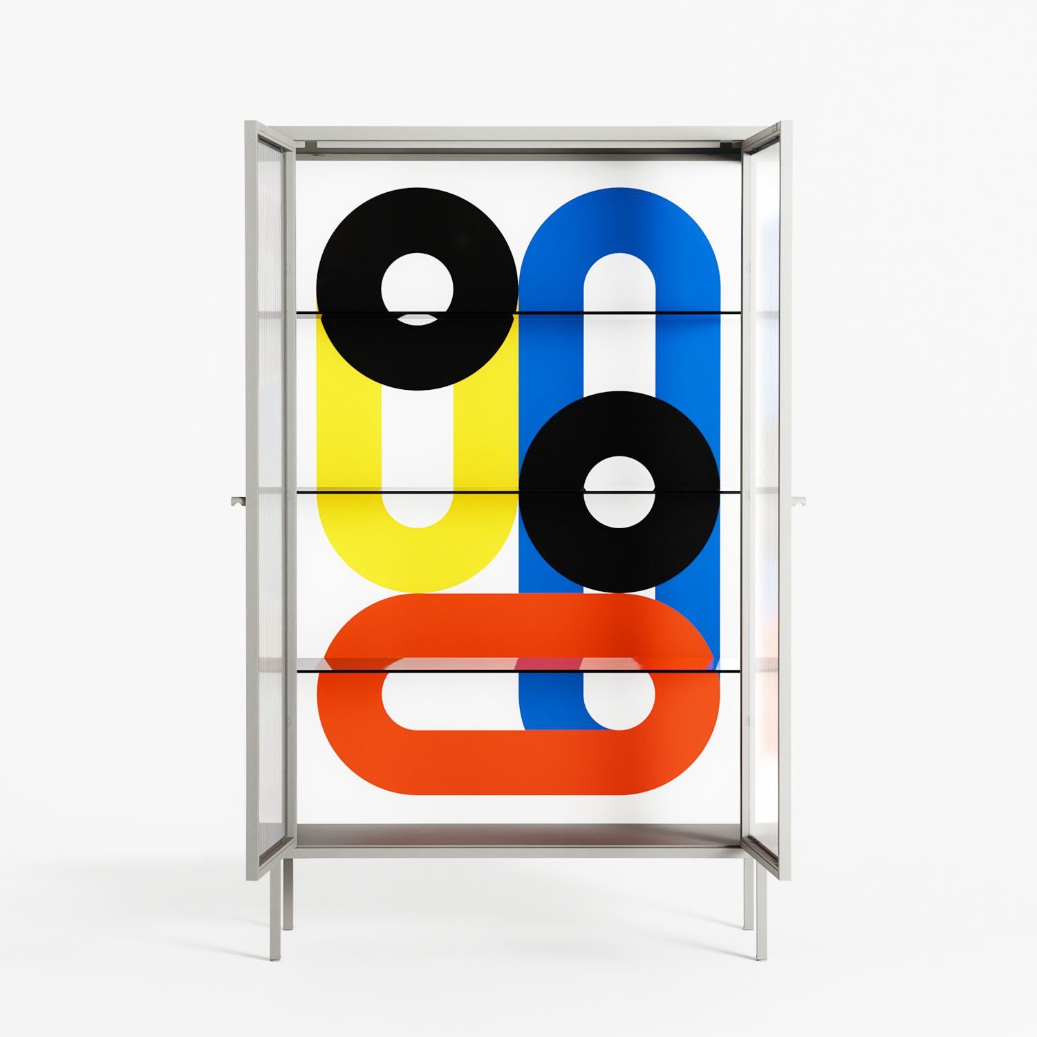 Vitrine pairs artworks by artists, designers, and creatives from around the world with a frame that elevates and displays them in everyday space. The cabinet is built from precision-cut metal with a powder-coated finish — resistant to wear and crafted for stability — making it ideal for both office and home spaces.