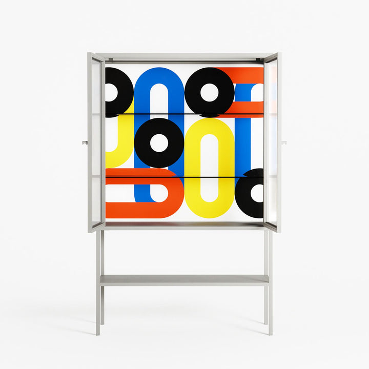 Vitrine pairs artworks by artists, designers, and creatives from around the world with a frame that elevates and displays them in everyday space. The cabinet is built from precision-cut metal with a powder-coated finish — resistant to wear and crafted for stability — making it ideal for both office and home spaces.