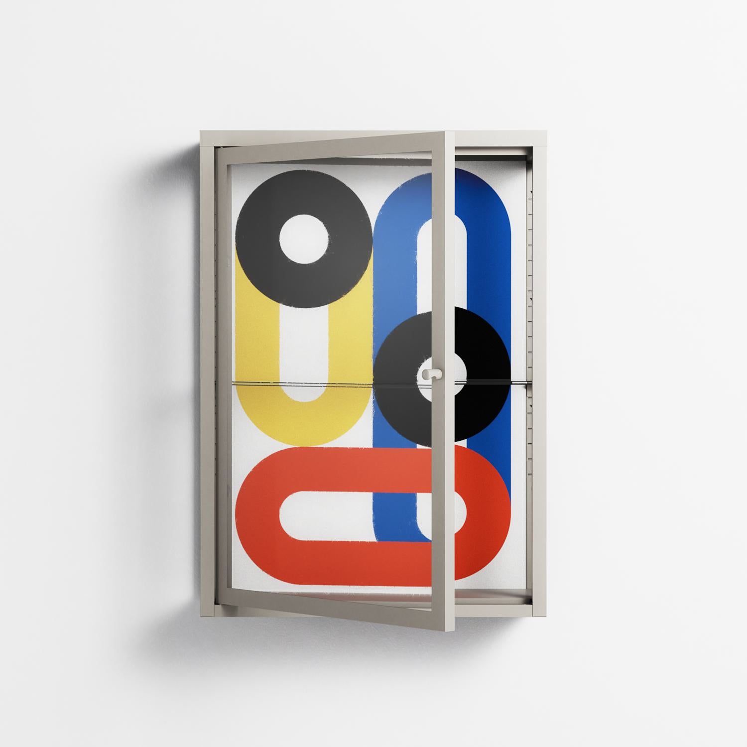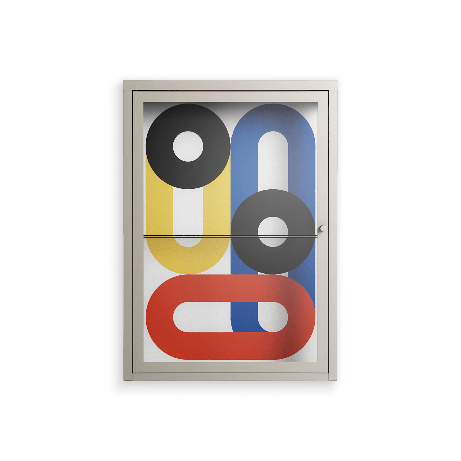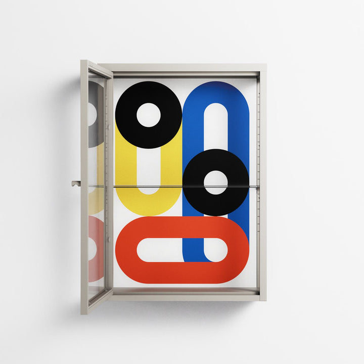 Vitrine pairs artworks by artists, designers, and creatives from around the world with a frame that elevates and displays them in everyday space. The cabinet is built from precision-cut metal with a powder-coated finish — resistant to wear and crafted for stability — making it ideal for both office and home spaces.