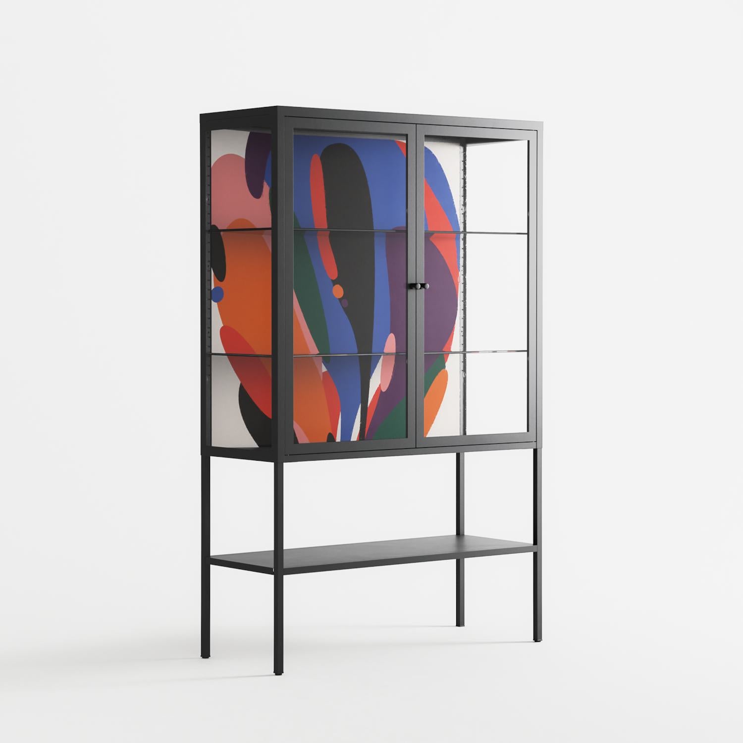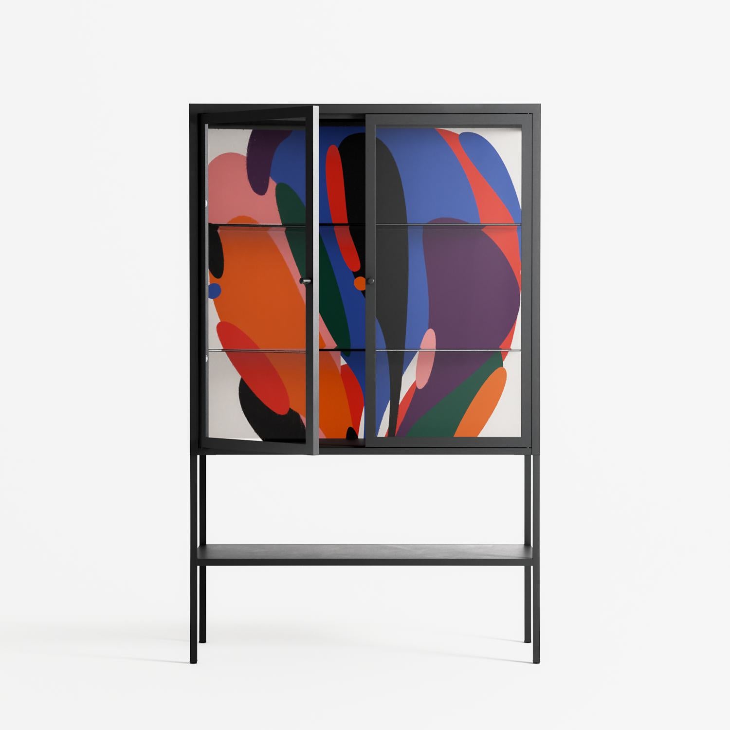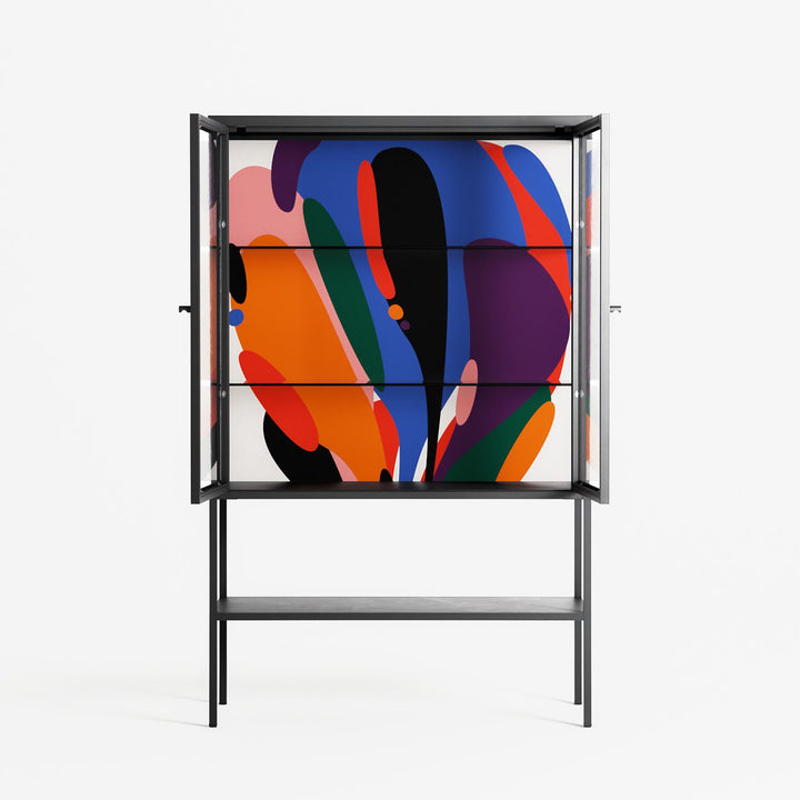 Vitrine pairs artworks by artists, designers, and creatives from around the world with a frame that elevates and displays them in everyday space. The cabinet is built from precision-cut metal with a powder-coated finish — resistant to wear and crafted for stability — making it ideal for both office and home spaces.