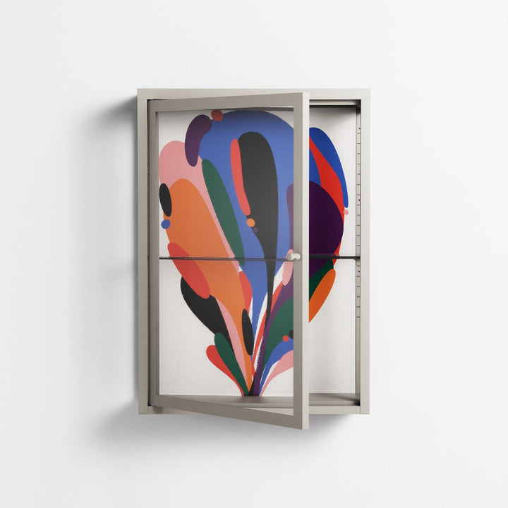 Vitrine pairs artworks by artists, designers, and creatives from around the world with a frame that elevates and displays them in everyday space. The cabinet is built from precision-cut metal with a powder-coated finish — resistant to wear and crafted for stability — making it ideal for both office and home spaces.