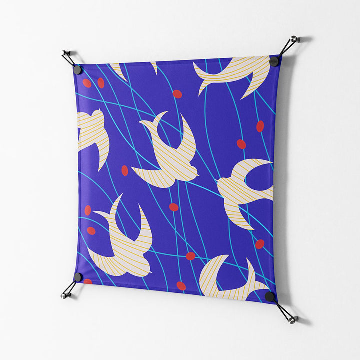 Birds A by Heather Zhou, printed on premium cotton canvas and displayed with WOW. Work on Wall is Workdeco’s signature frameless suspension system—art floating freely with no frame, no glass, just the work and the wall.
