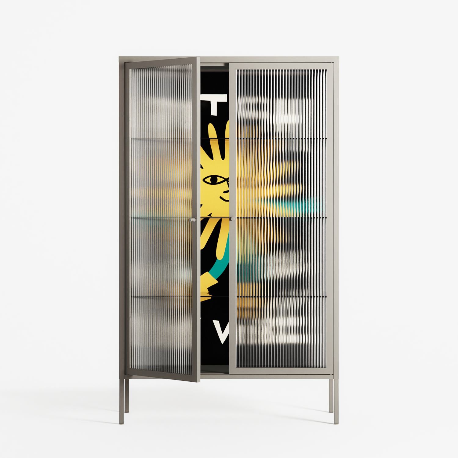 Vitrine pairs artworks by artists, designers, and creatives from around the world with a frame that elevates and displays them in everyday space. The cabinet is built from precision-cut metal with a powder-coated finish — resistant to wear and crafted for stability — making it ideal for both office and home spaces.