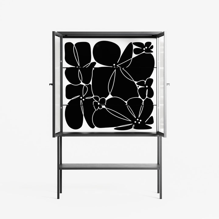 Vitrine pairs artworks by artists, designers, and creatives from around the world with a frame that elevates and displays them in everyday space. The cabinet is built from precision-cut metal with a powder-coated finish — resistant to wear and crafted for stability — making it ideal for both office and home spaces.
