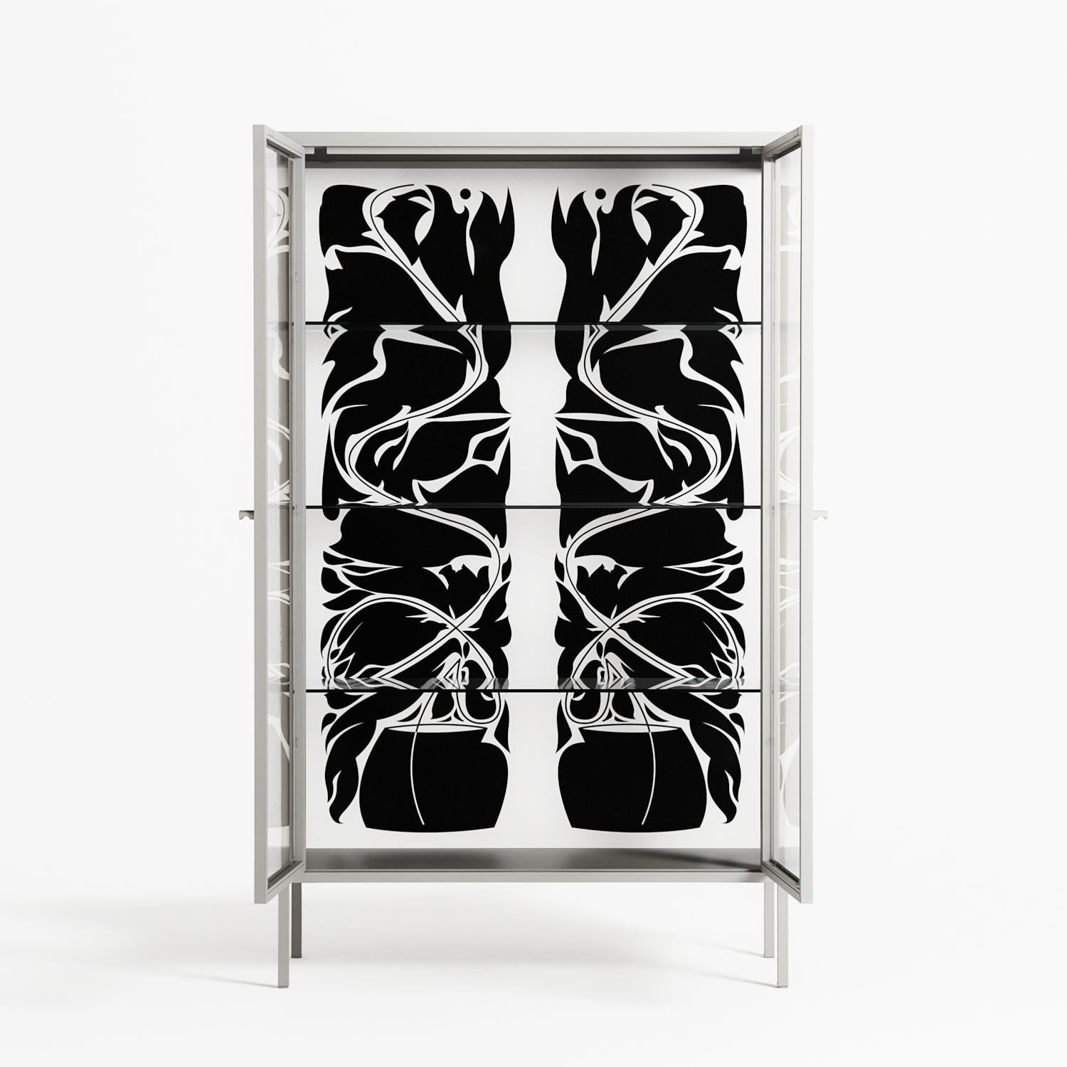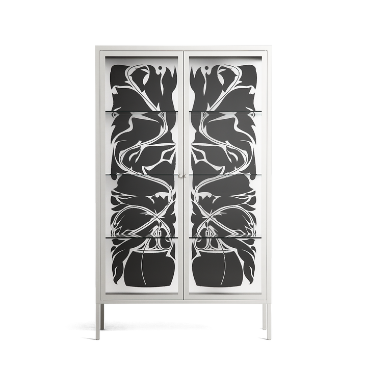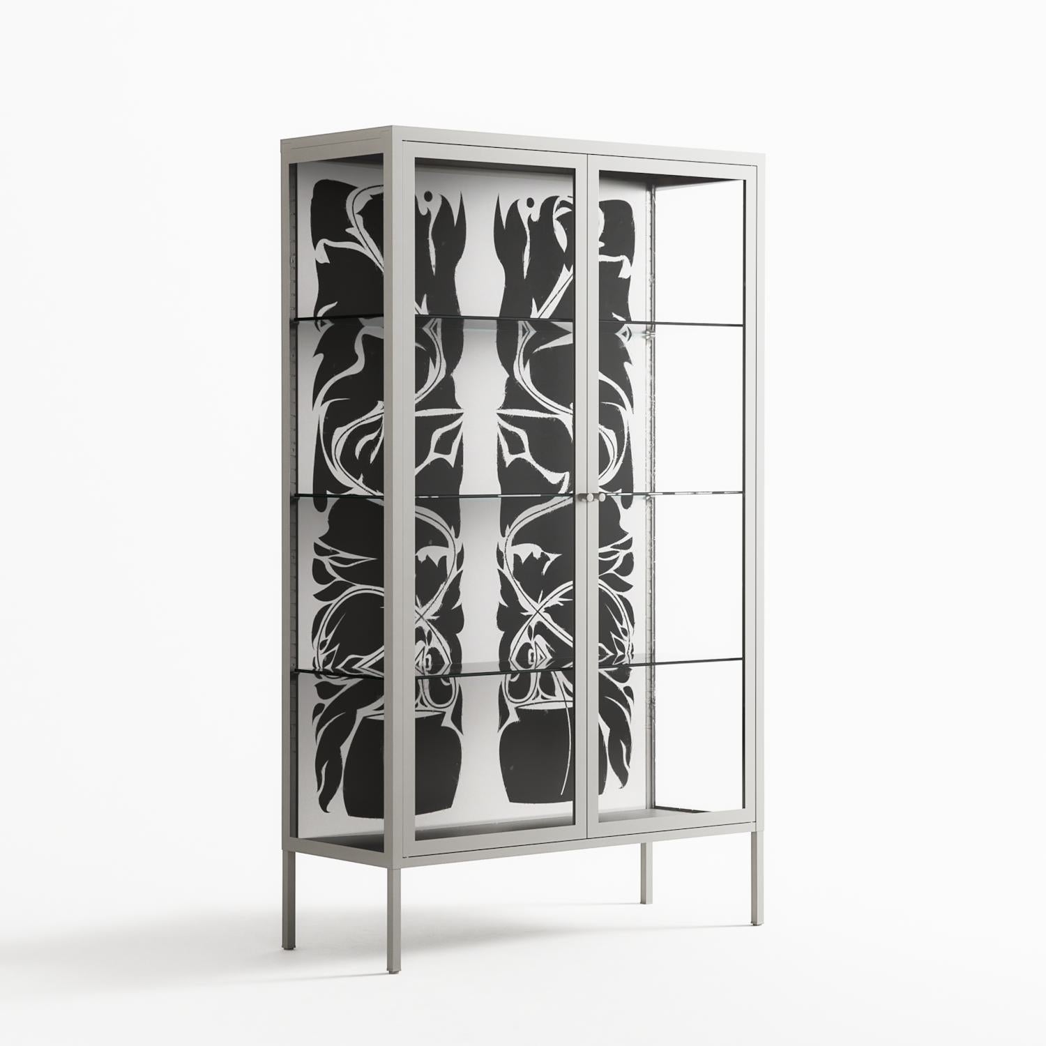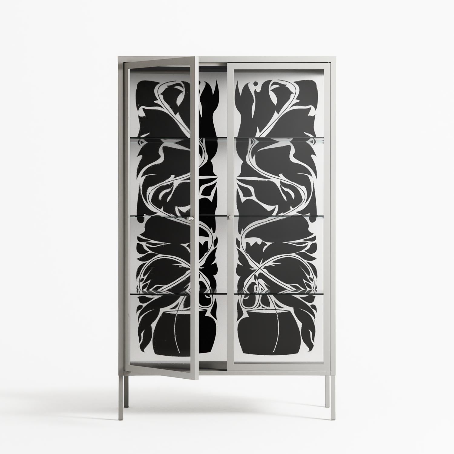 Vitrine pairs artworks by artists, designers, and creatives from around the world with a frame that elevates and displays them in everyday space. The cabinet is built from precision-cut metal with a powder-coated finish — resistant to wear and crafted for stability — making it ideal for both office and home spaces.