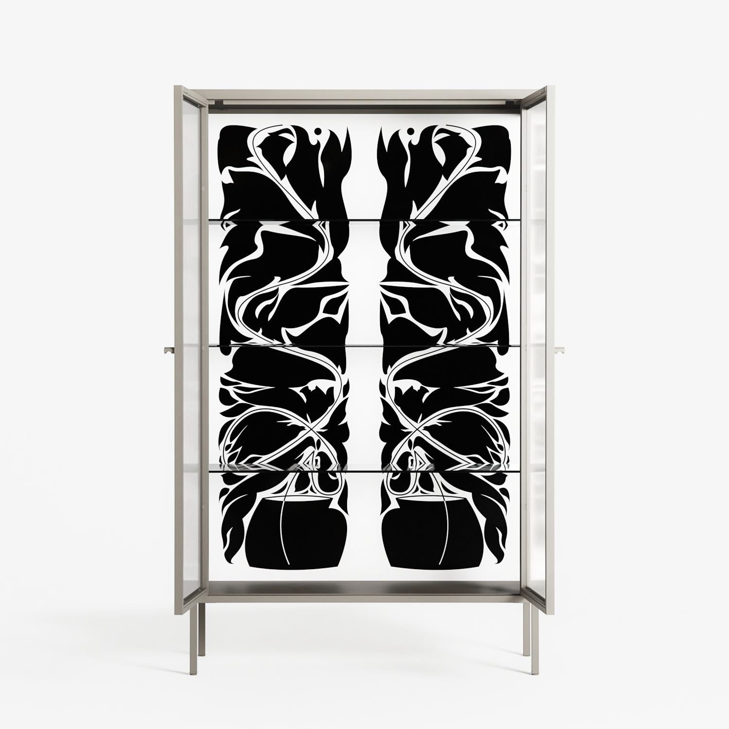 Vitrine pairs artworks by artists, designers, and creatives from around the world with a frame that elevates and displays them in everyday space. The cabinet is built from precision-cut metal with a powder-coated finish — resistant to wear and crafted for stability — making it ideal for both office and home spaces.