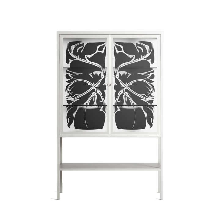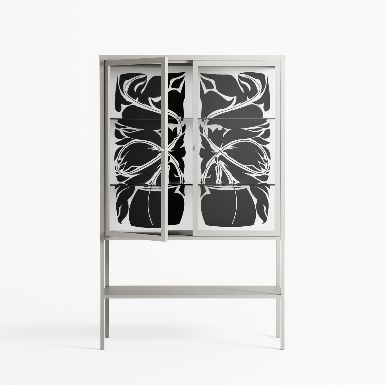 Vitrine pairs artworks by artists, designers, and creatives from around the world with a frame that elevates and displays them in everyday space. The cabinet is built from precision-cut metal with a powder-coated finish — resistant to wear and crafted for stability — making it ideal for both office and home spaces.
