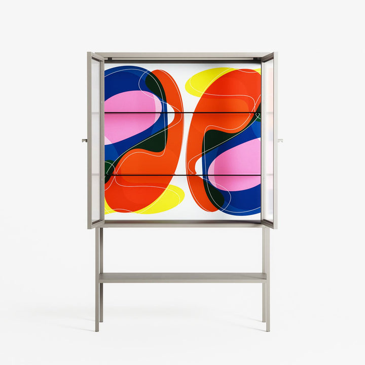 Vitrine pairs artworks by artists, designers, and creatives from around the world with a frame that elevates and displays them in everyday space. The cabinet is built from precision-cut metal with a powder-coated finish — resistant to wear and crafted for stability — making it ideal for both office and home spaces.