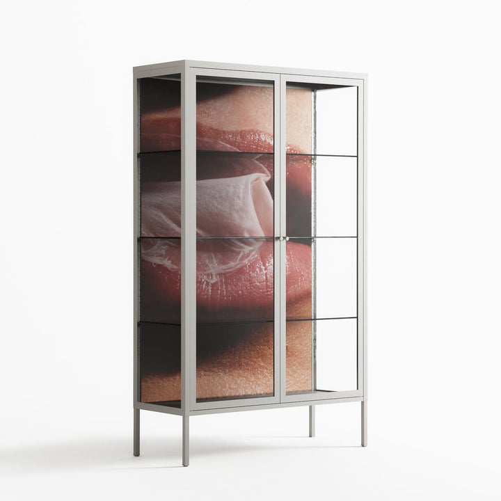 Vitrine pairs artworks by artists, designers, and creatives from around the world with a frame that elevates and displays them in everyday space. The cabinet is built from precision-cut metal with a powder-coated finish — resistant to wear and crafted for stability — making it ideal for both office and home spaces.