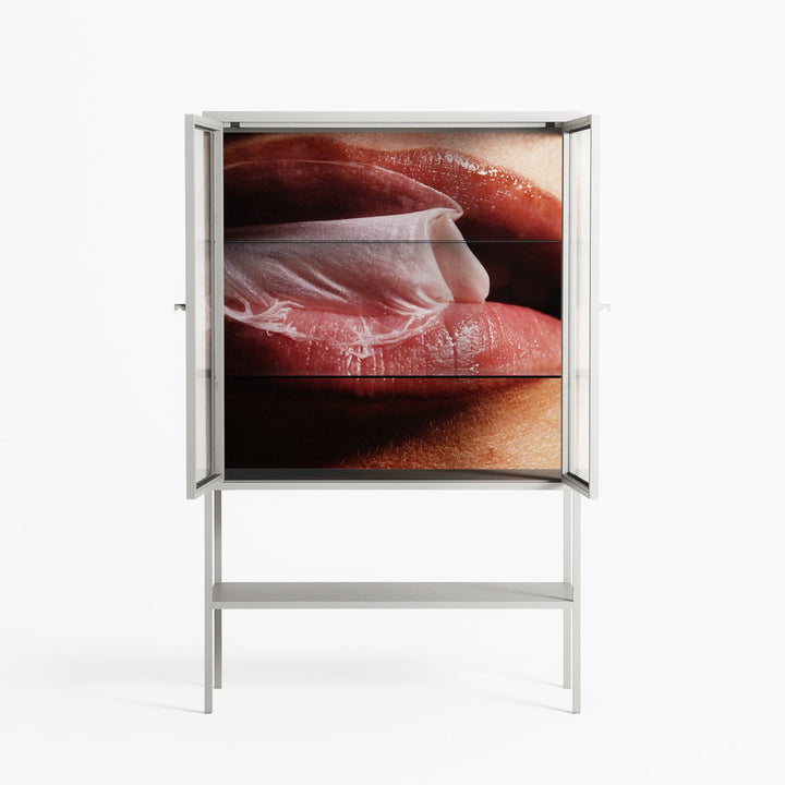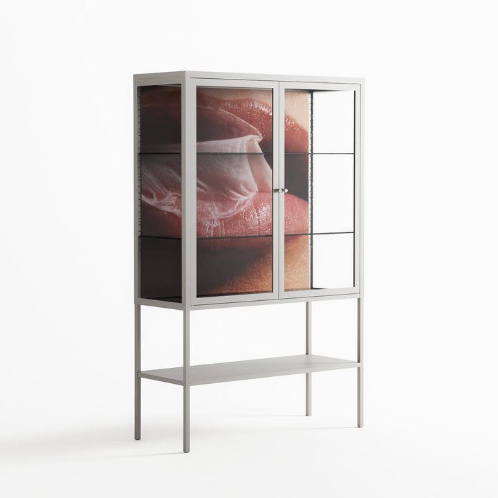 Vitrine pairs artworks by artists, designers, and creatives from around the world with a frame that elevates and displays them in everyday space. The cabinet is built from precision-cut metal with a powder-coated finish — resistant to wear and crafted for stability — making it ideal for both office and home spaces.