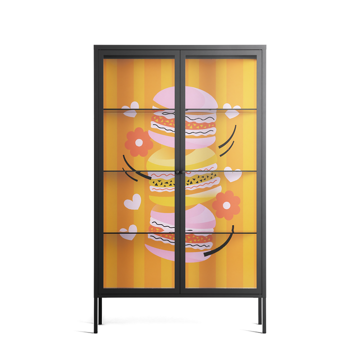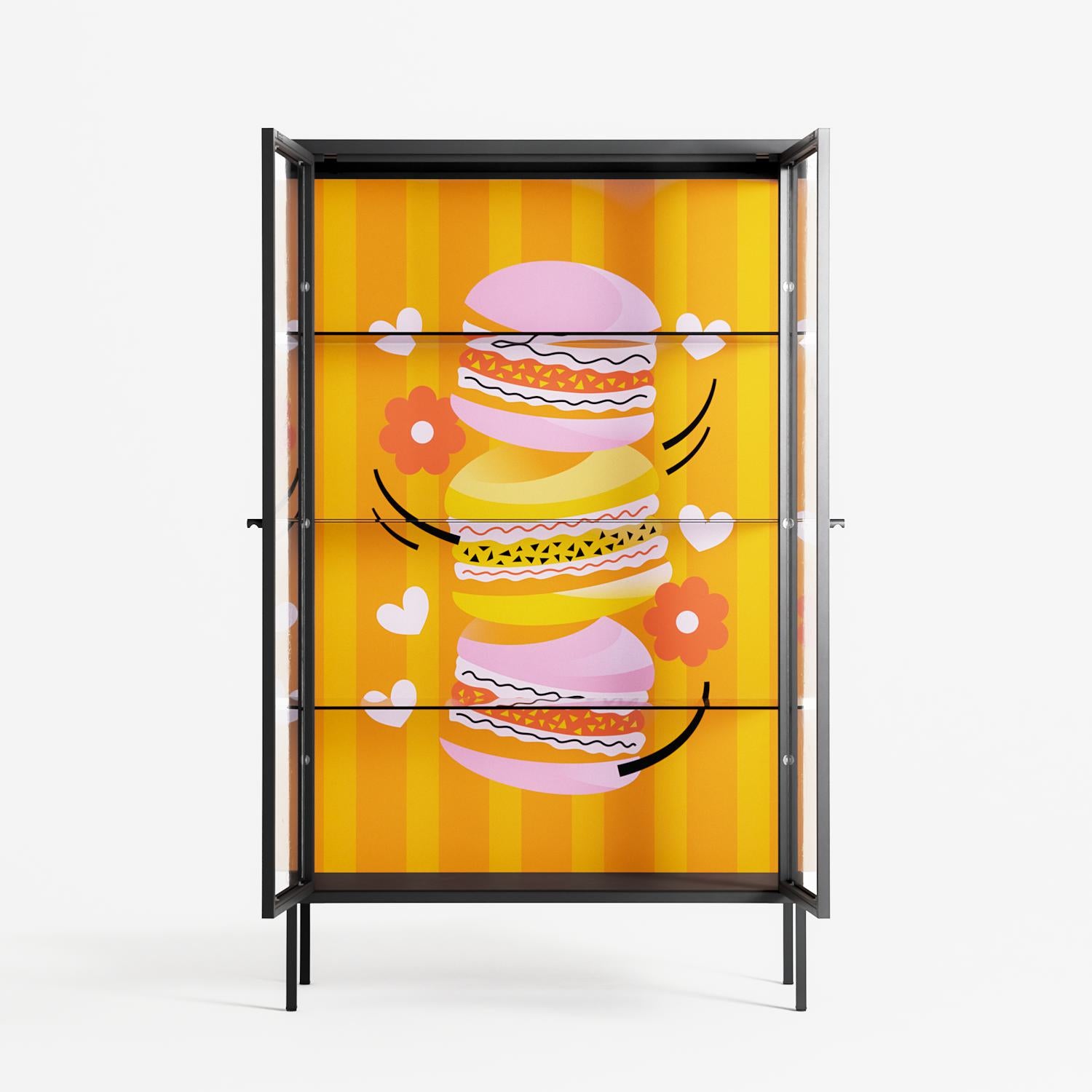 Vitrine pairs artworks by artists, designers, and creatives from around the world with a frame that elevates and displays them in everyday space. The cabinet is built from precision-cut metal with a powder-coated finish — resistant to wear and crafted for stability — making it ideal for both office and home spaces.