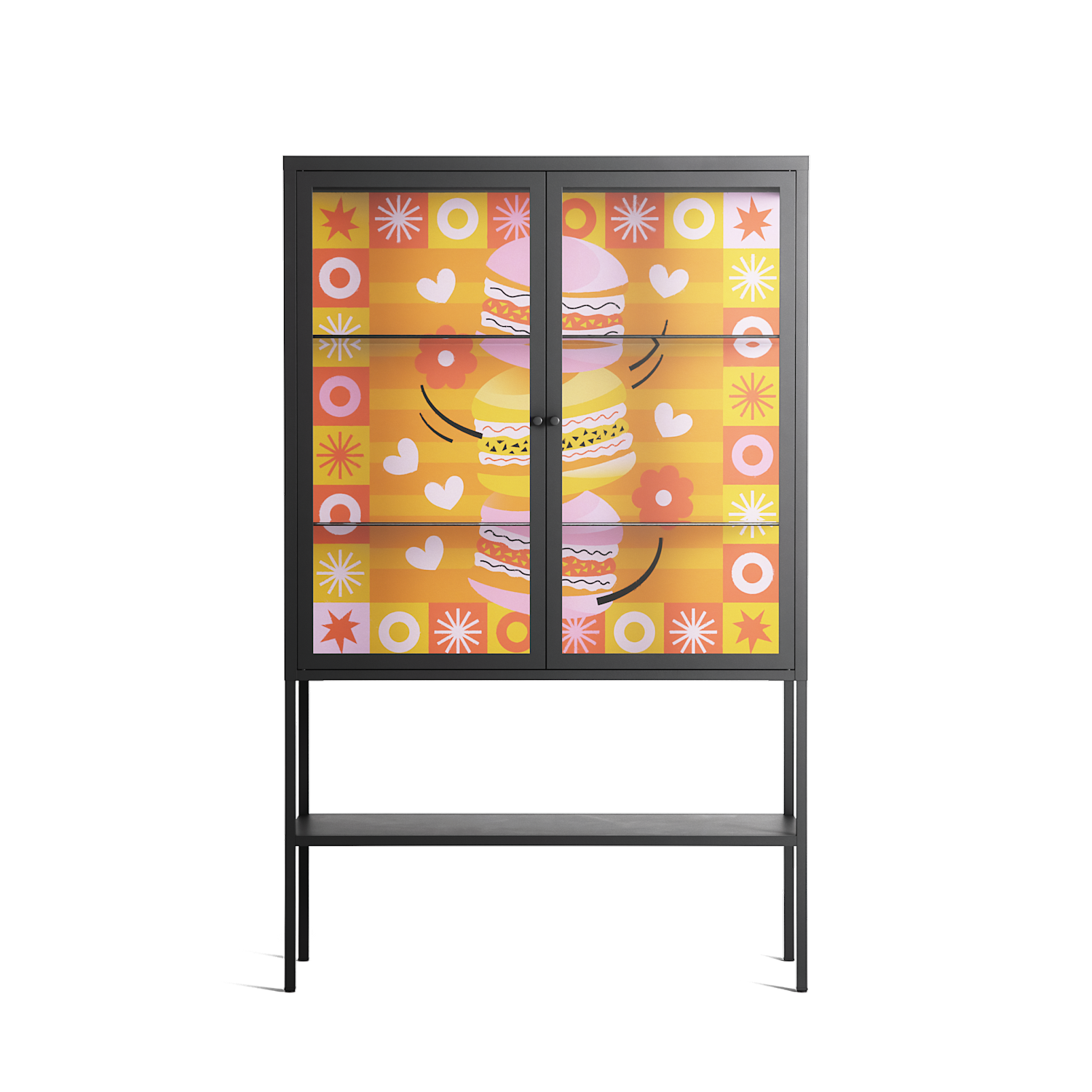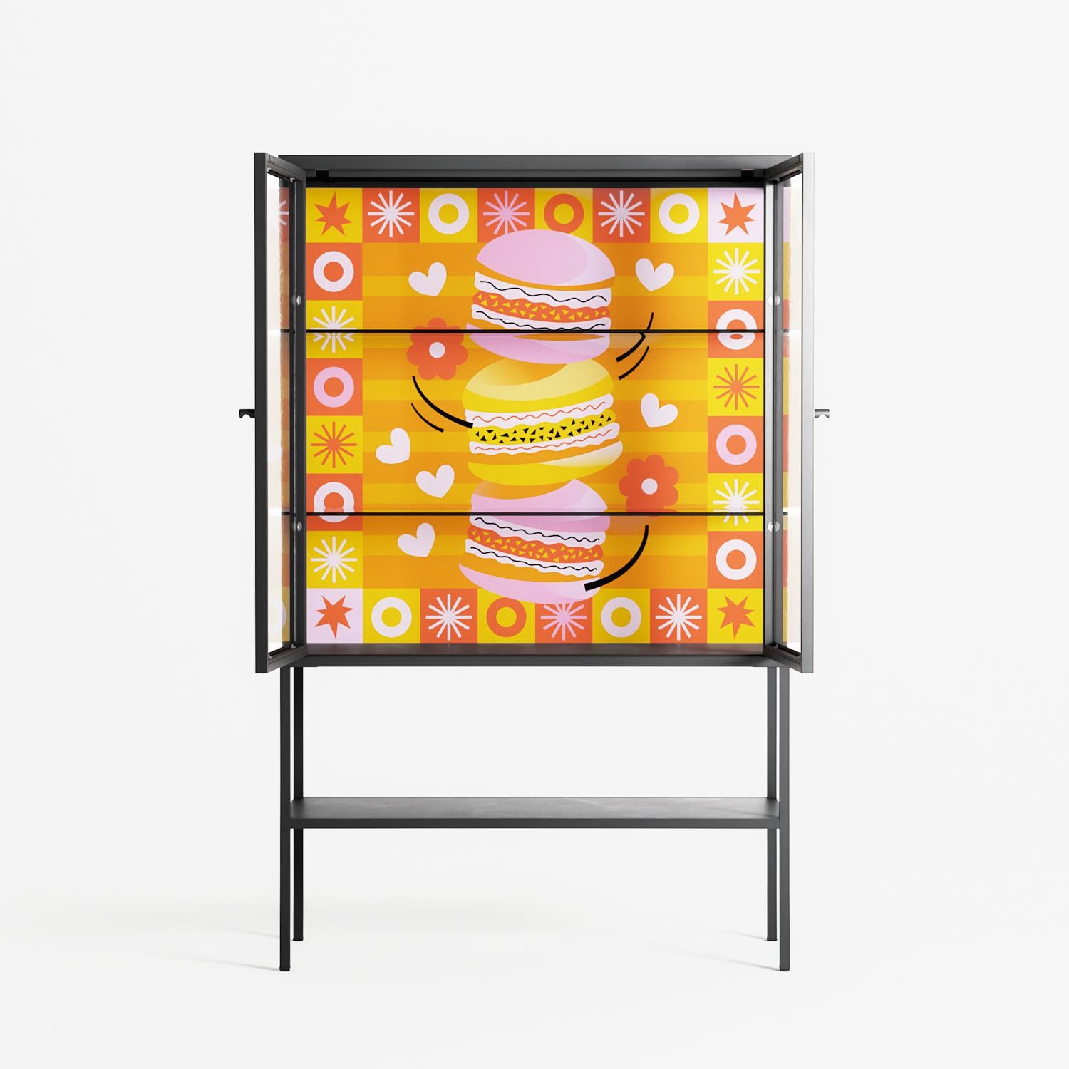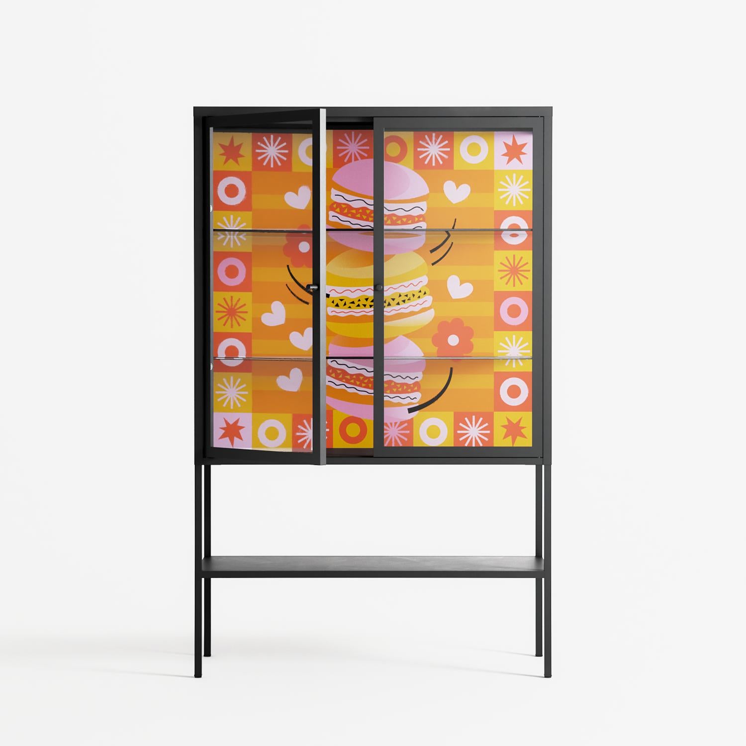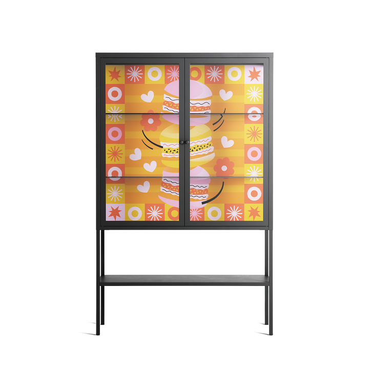 Vitrine pairs artworks by artists, designers, and creatives from around the world with a frame that elevates and displays them in everyday space. The cabinet is built from precision-cut metal with a powder-coated finish — resistant to wear and crafted for stability — making it ideal for both office and home spaces.