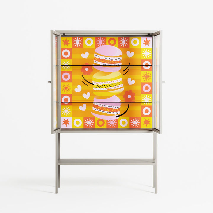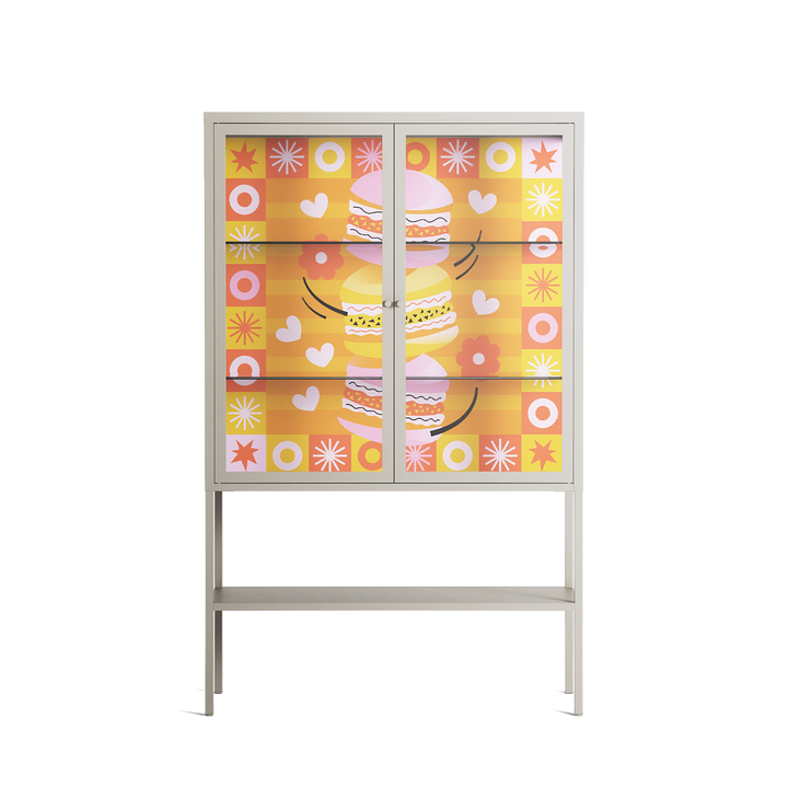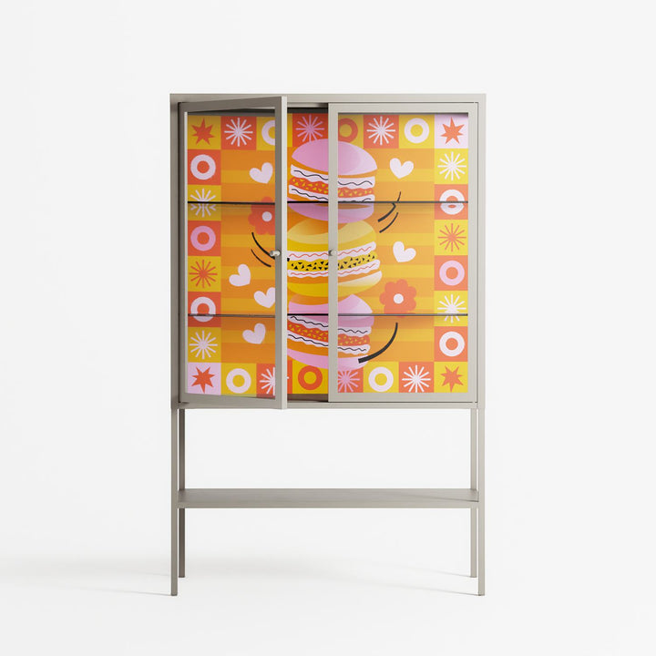 Vitrine pairs artworks by artists, designers, and creatives from around the world with a frame that elevates and displays them in everyday space. The cabinet is built from precision-cut metal with a powder-coated finish — resistant to wear and crafted for stability — making it ideal for both office and home spaces.