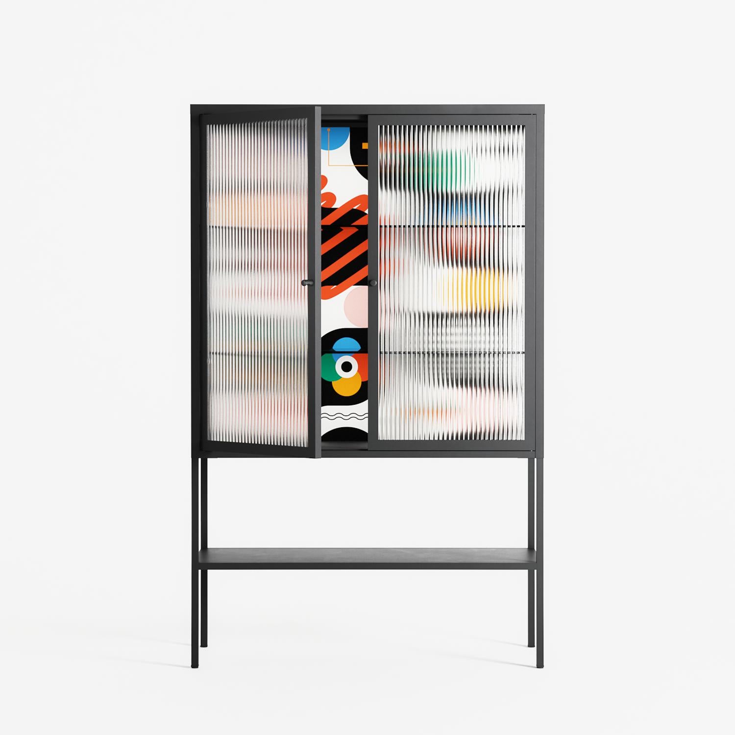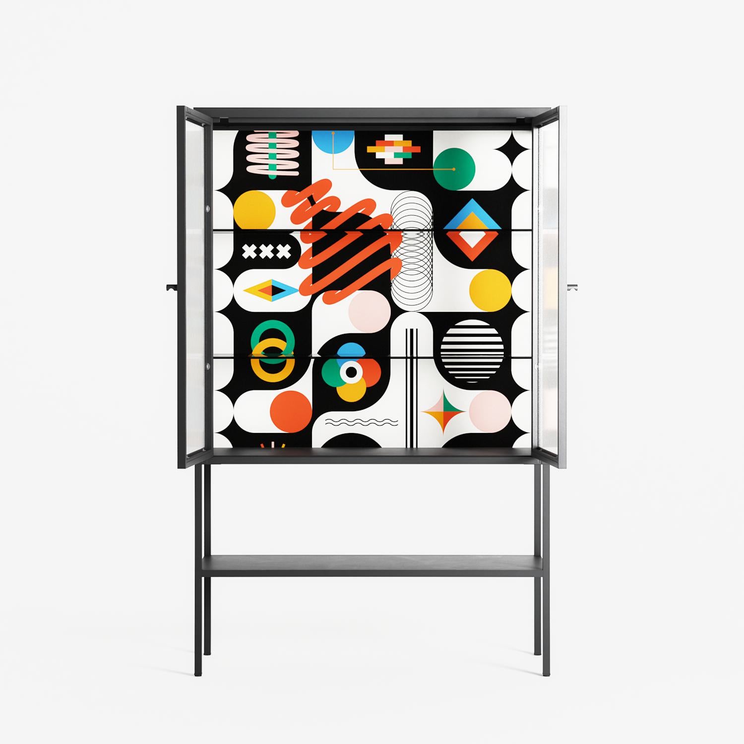 Vitrine pairs artworks by artists, designers, and creatives from around the world with a frame that elevates and displays them in everyday space. The cabinet is built from precision-cut metal with a powder-coated finish — resistant to wear and crafted for stability — making it ideal for both office and home spaces.