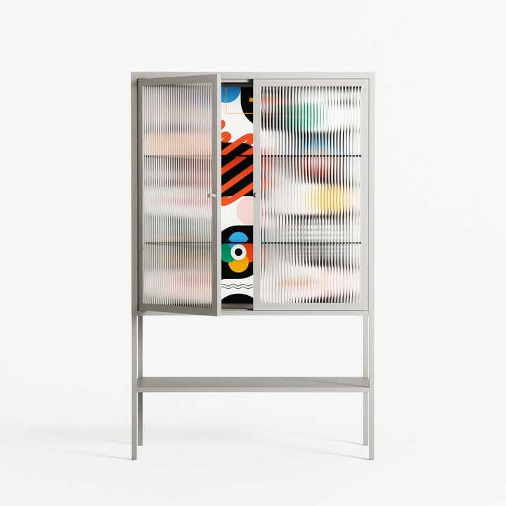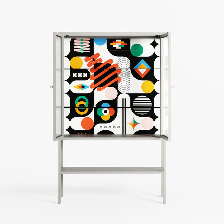 Vitrine pairs artworks by artists, designers, and creatives from around the world with a frame that elevates and displays them in everyday space. The cabinet is built from precision-cut metal with a powder-coated finish — resistant to wear and crafted for stability — making it ideal for both office and home spaces.