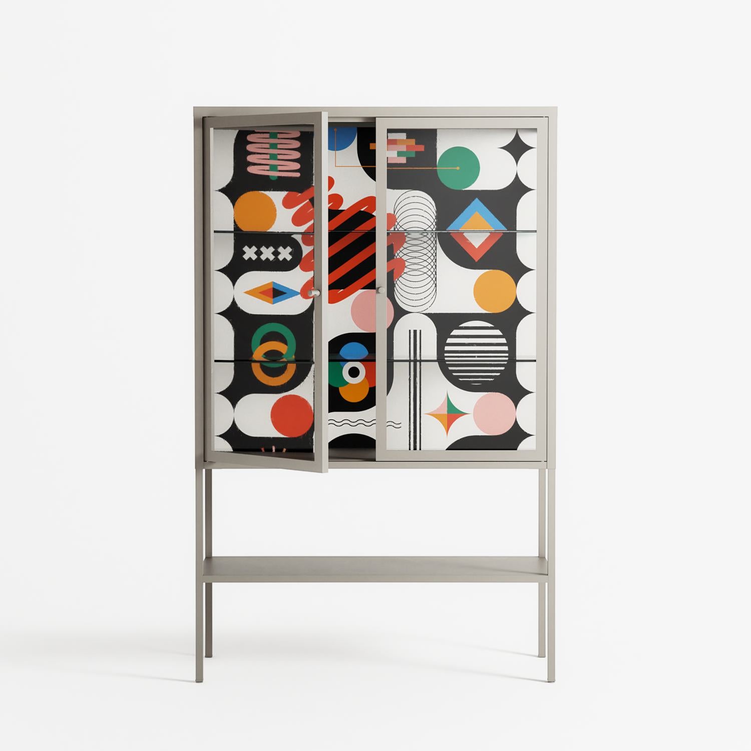 Vitrine pairs artworks by artists, designers, and creatives from around the world with a frame that elevates and displays them in everyday space. The cabinet is built from precision-cut metal with a powder-coated finish — resistant to wear and crafted for stability — making it ideal for both office and home spaces.