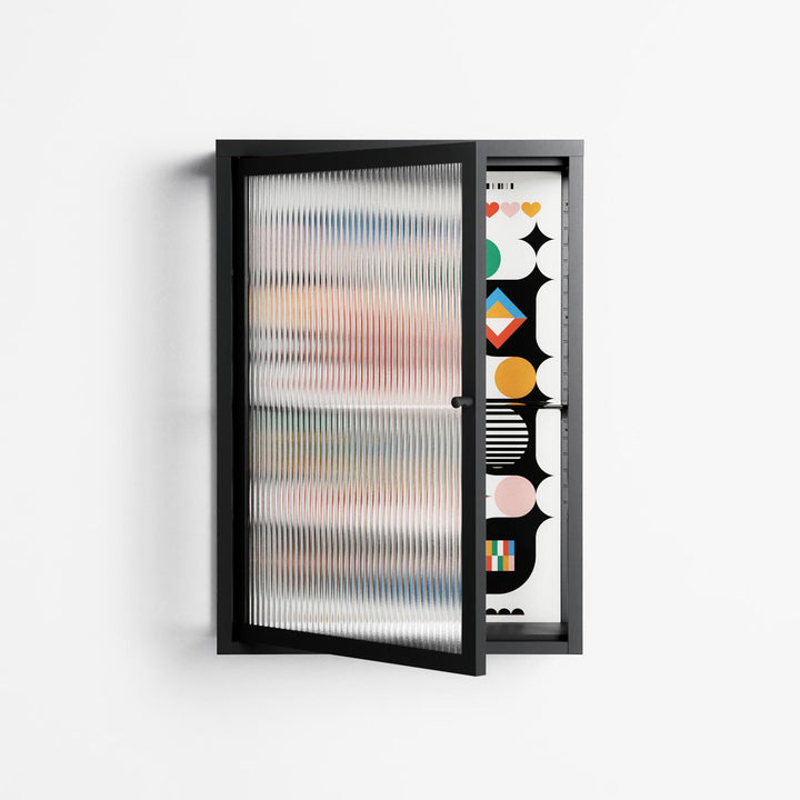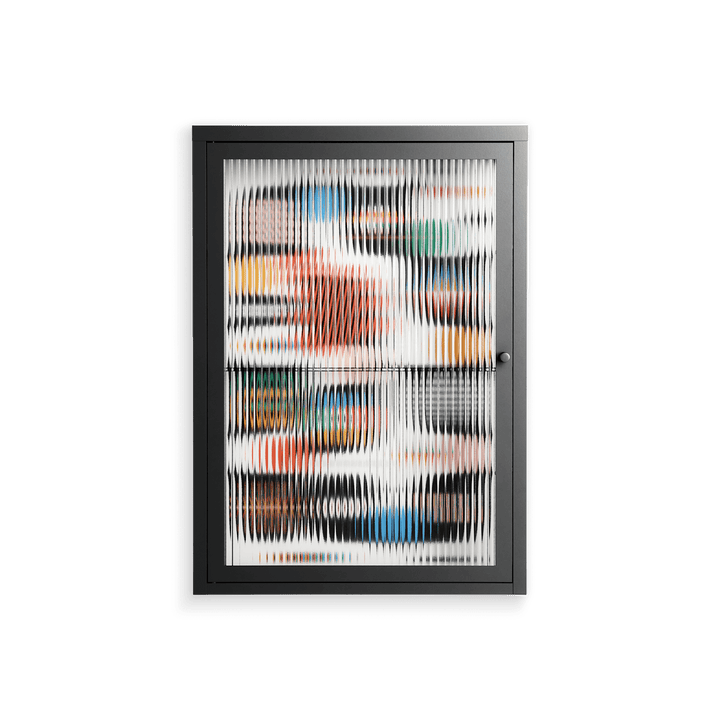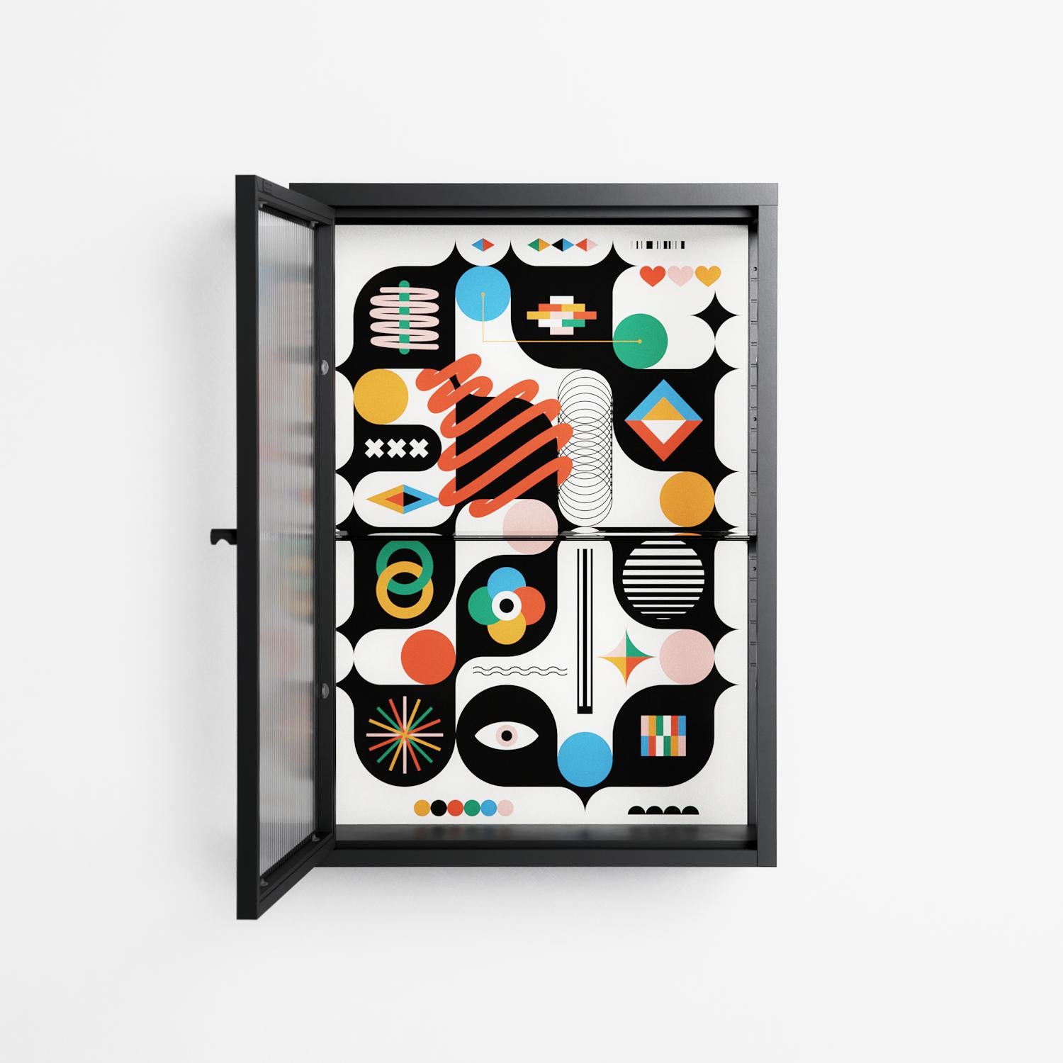 Vitrine pairs artworks by artists, designers, and creatives from around the world with a frame that elevates and displays them in everyday space. The cabinet is built from precision-cut metal with a powder-coated finish — resistant to wear and crafted for stability — making it ideal for both office and home spaces.