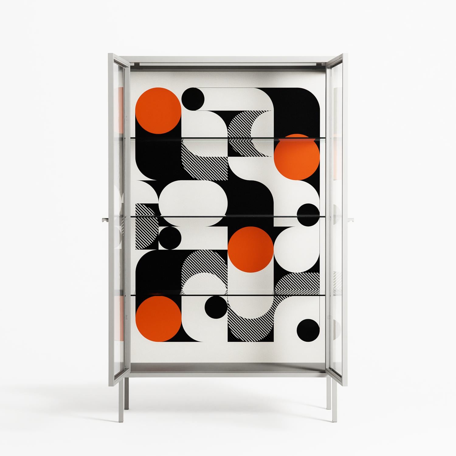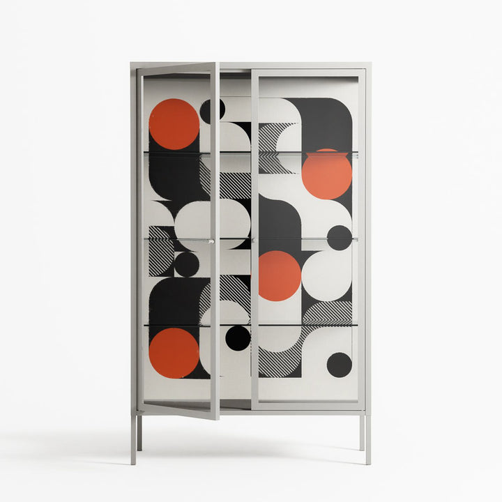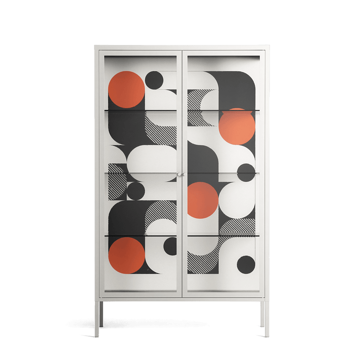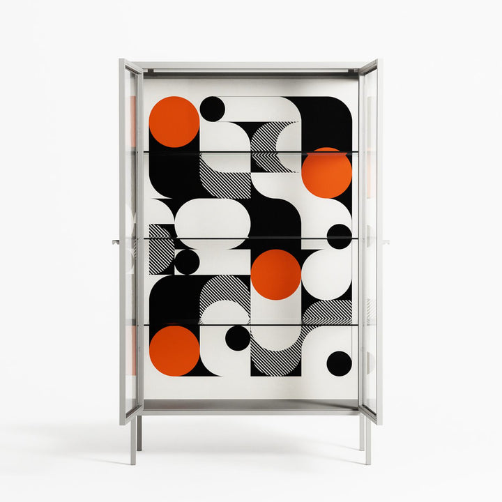 Vitrine pairs artworks by artists, designers, and creatives from around the world with a frame that elevates and displays them in everyday space. The cabinet is built from precision-cut metal with a powder-coated finish — resistant to wear and crafted for stability — making it ideal for both office and home spaces.