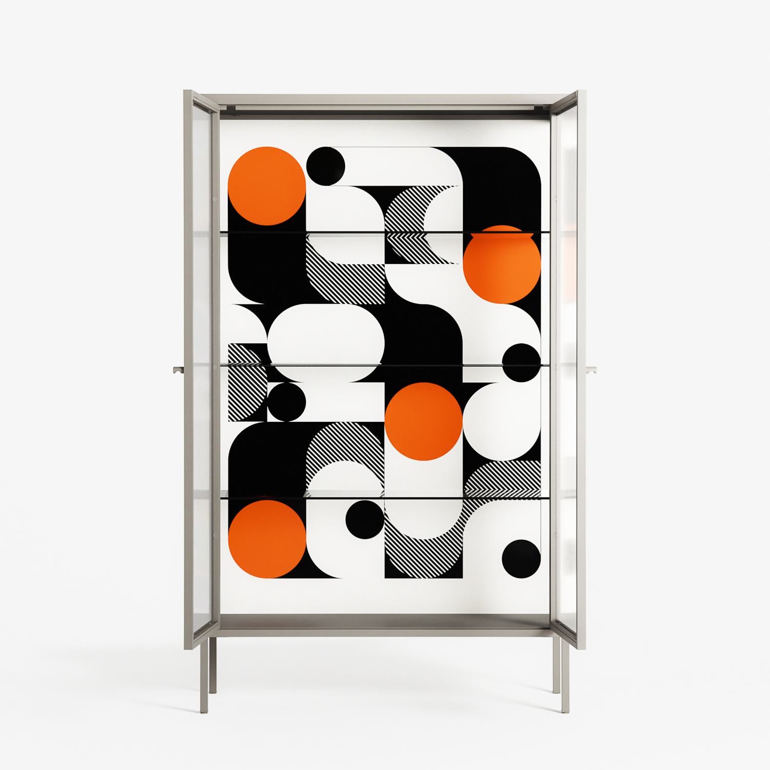 Vitrine pairs artworks by artists, designers, and creatives from around the world with a frame that elevates and displays them in everyday space. The cabinet is built from precision-cut metal with a powder-coated finish — resistant to wear and crafted for stability — making it ideal for both office and home spaces.