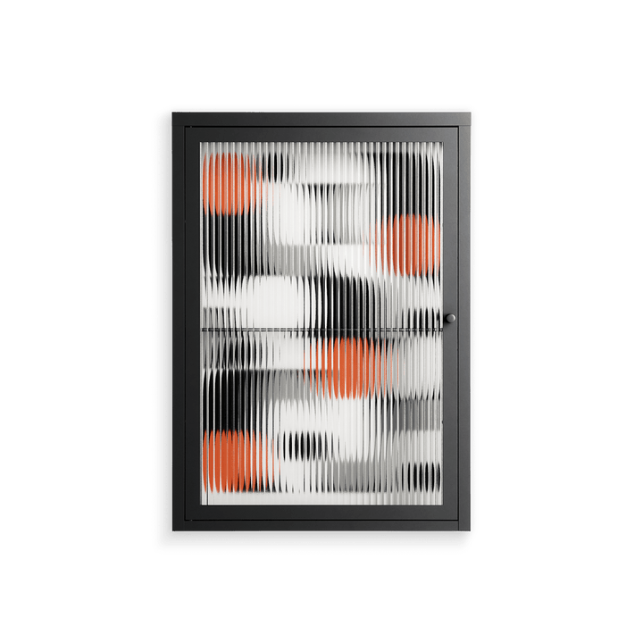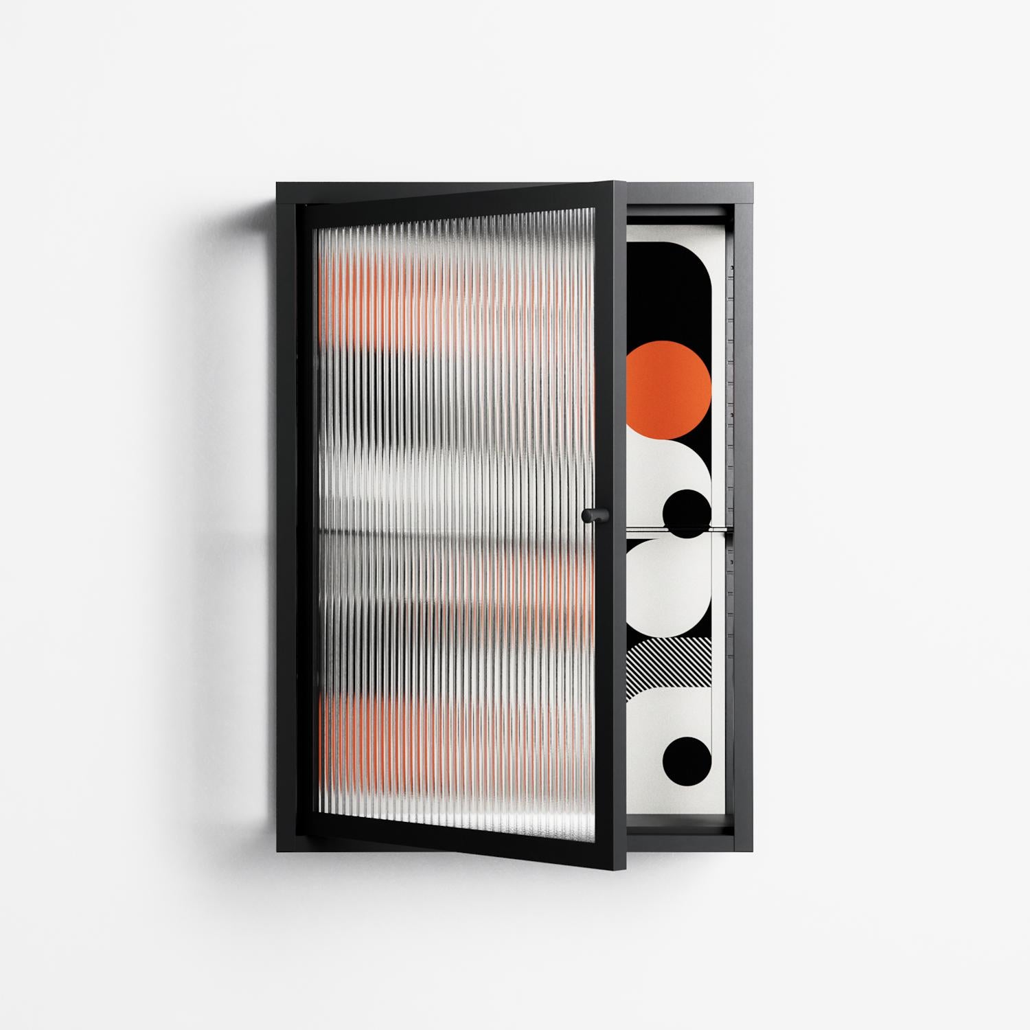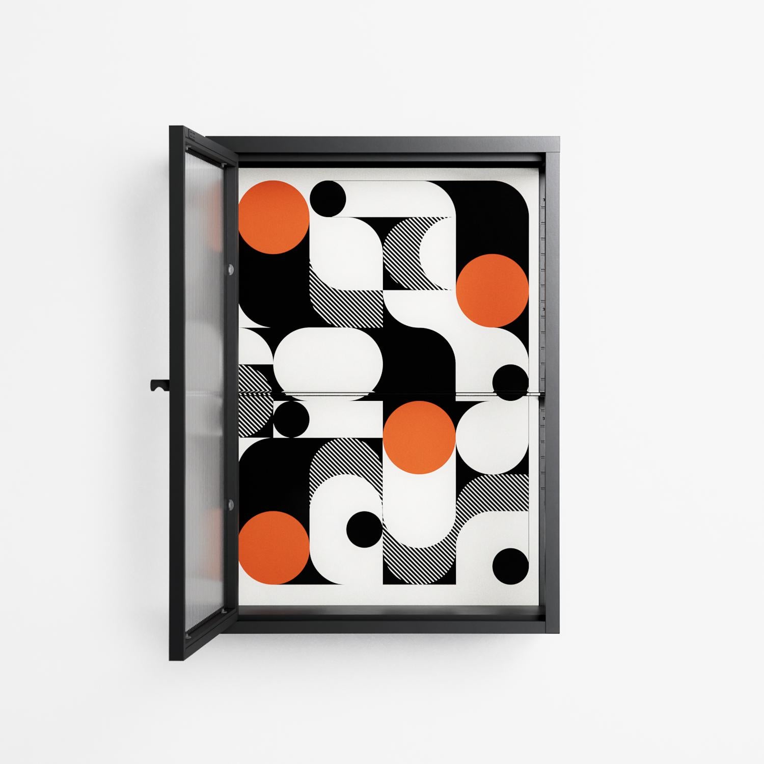 Vitrine pairs artworks by artists, designers, and creatives from around the world with a frame that elevates and displays them in everyday space. The cabinet is built from precision-cut metal with a powder-coated finish — resistant to wear and crafted for stability — making it ideal for both office and home spaces.