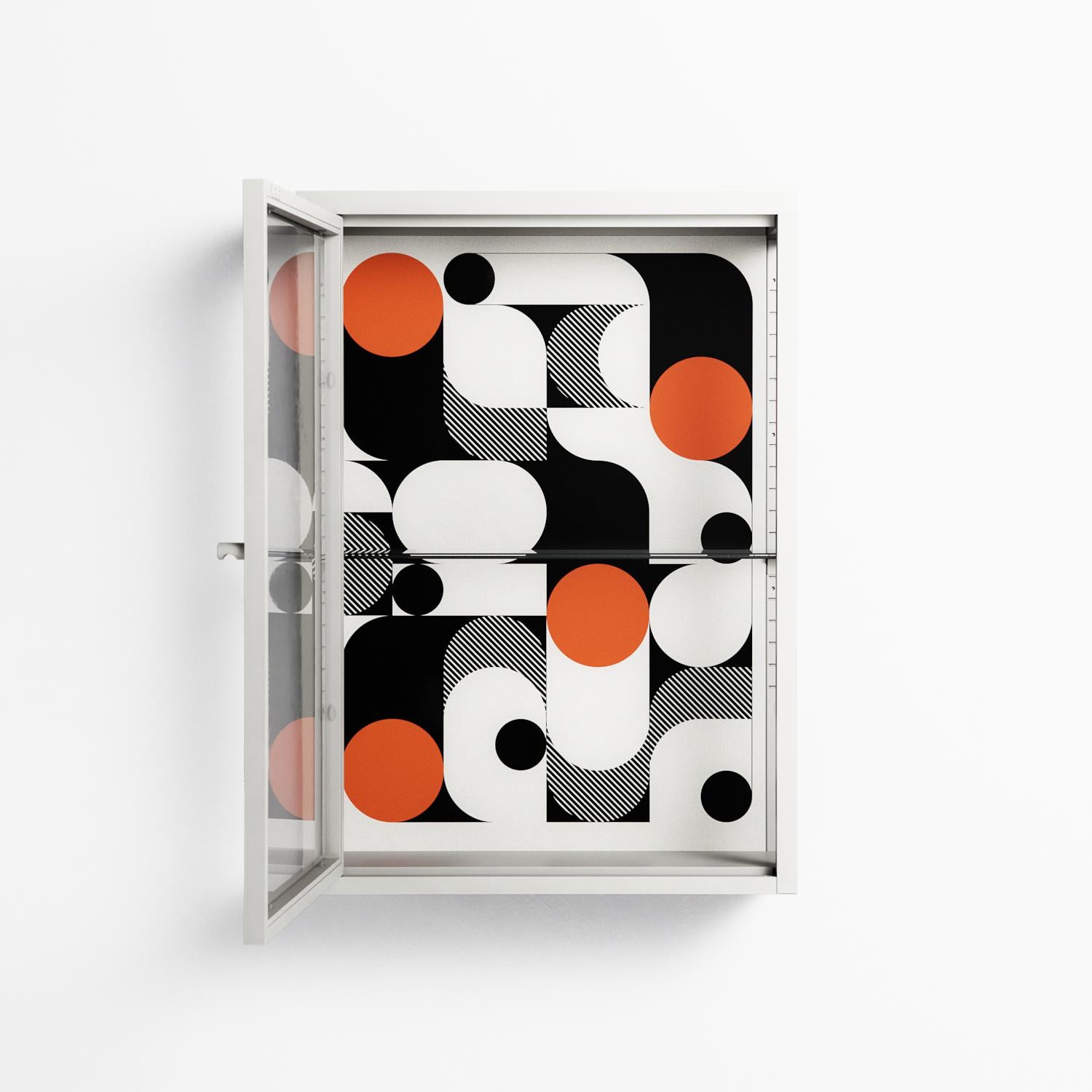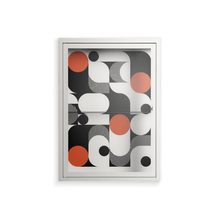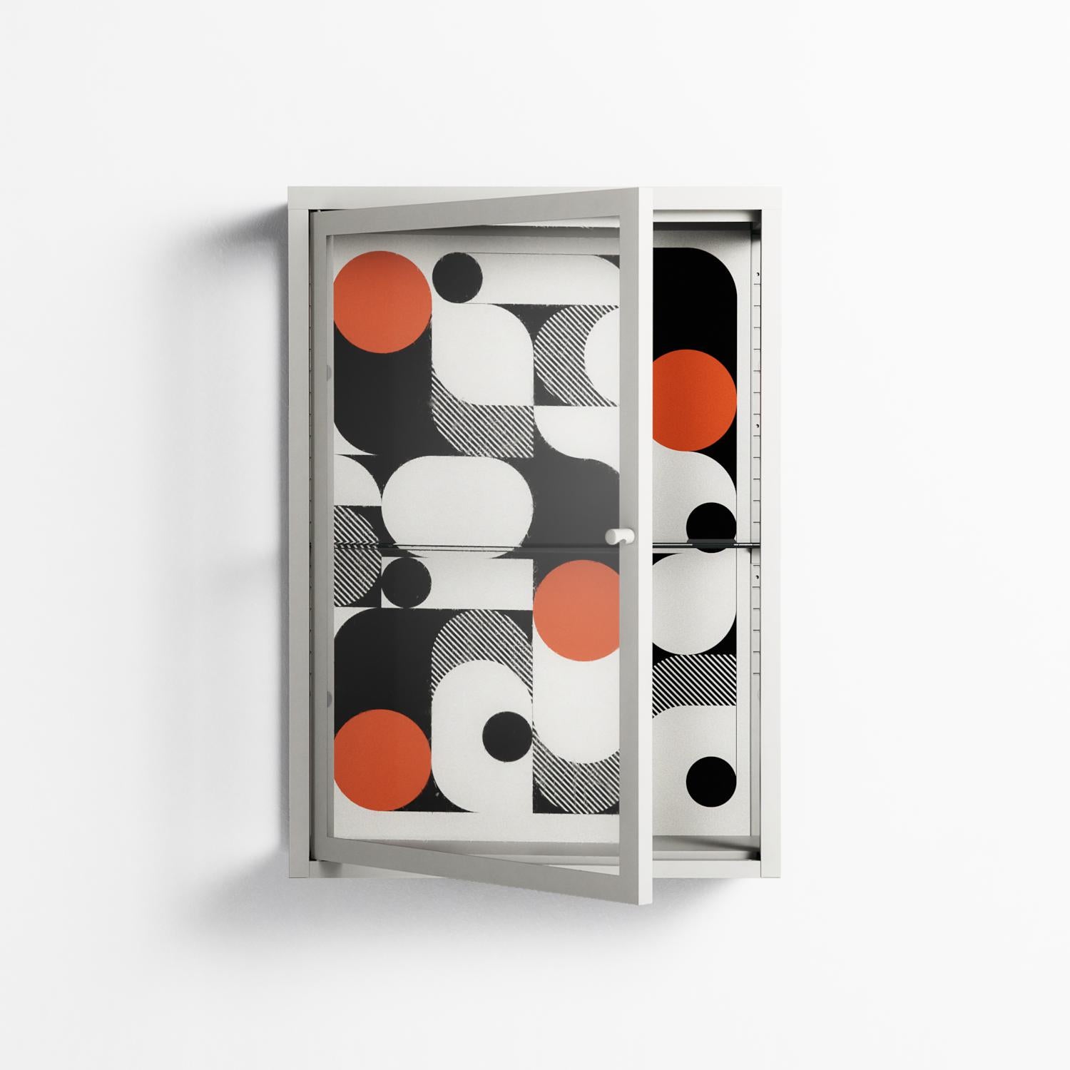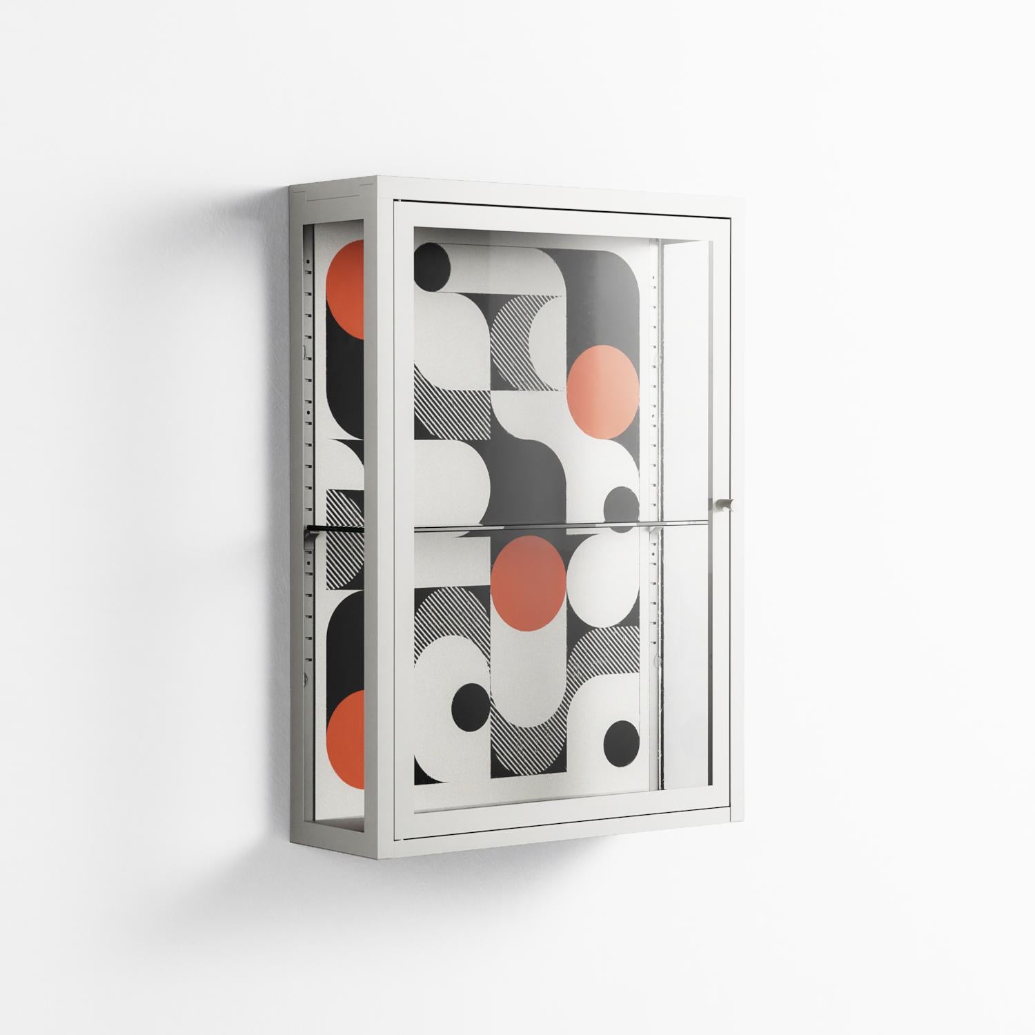 Vitrine pairs artworks by artists, designers, and creatives from around the world with a frame that elevates and displays them in everyday space. The cabinet is built from precision-cut metal with a powder-coated finish — resistant to wear and crafted for stability — making it ideal for both office and home spaces.