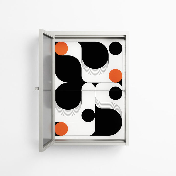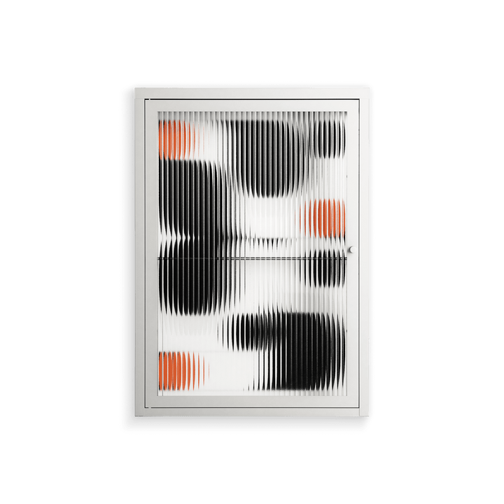 Vitrine pairs artworks by artists, designers, and creatives from around the world with a frame that elevates and displays them in everyday space. The cabinet is built from precision-cut metal with a powder-coated finish — resistant to wear and crafted for stability — making it ideal for both office and home spaces.