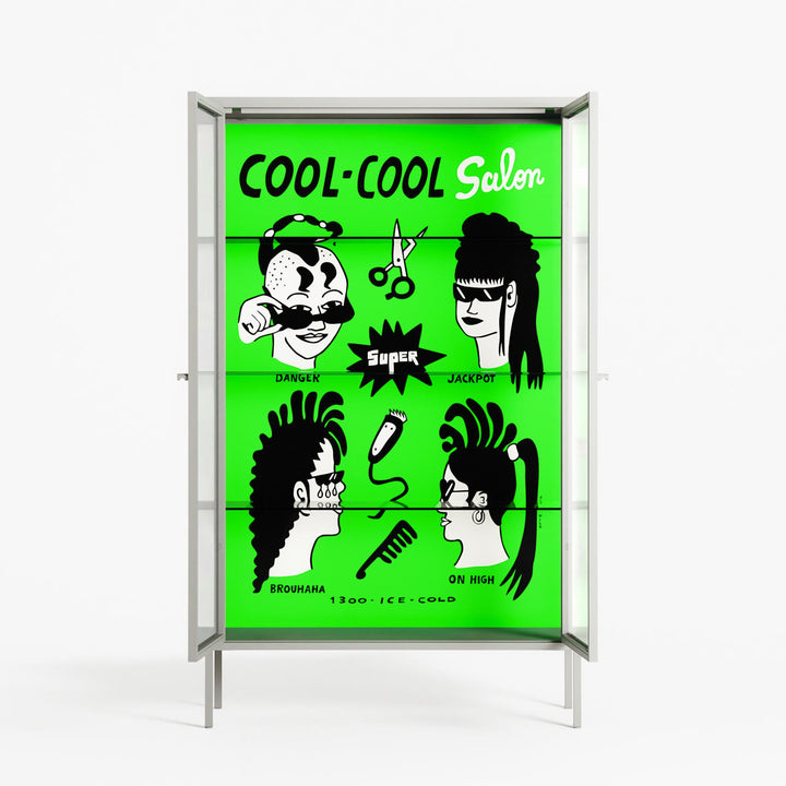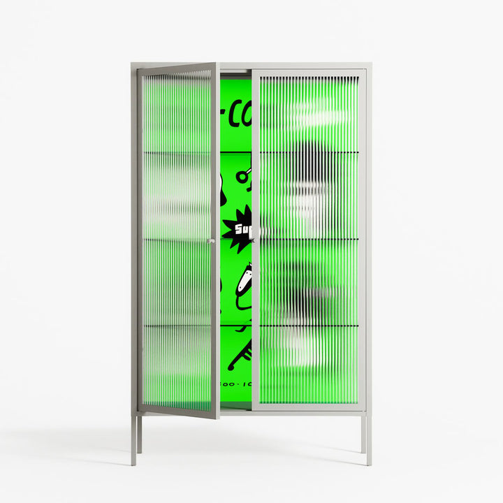Vitrine pairs artworks by artists, designers, and creatives from around the world with a frame that elevates and displays them in everyday space. The cabinet is built from precision-cut metal with a powder-coated finish — resistant to wear and crafted for stability — making it ideal for both office and home spaces.