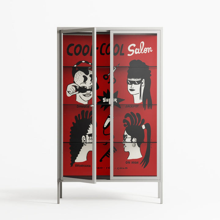 Vitrine pairs artworks by artists, designers, and creatives from around the world with a frame that elevates and displays them in everyday space. The cabinet is built from precision-cut metal with a powder-coated finish — resistant to wear and crafted for stability — making it ideal for both office and home spaces.