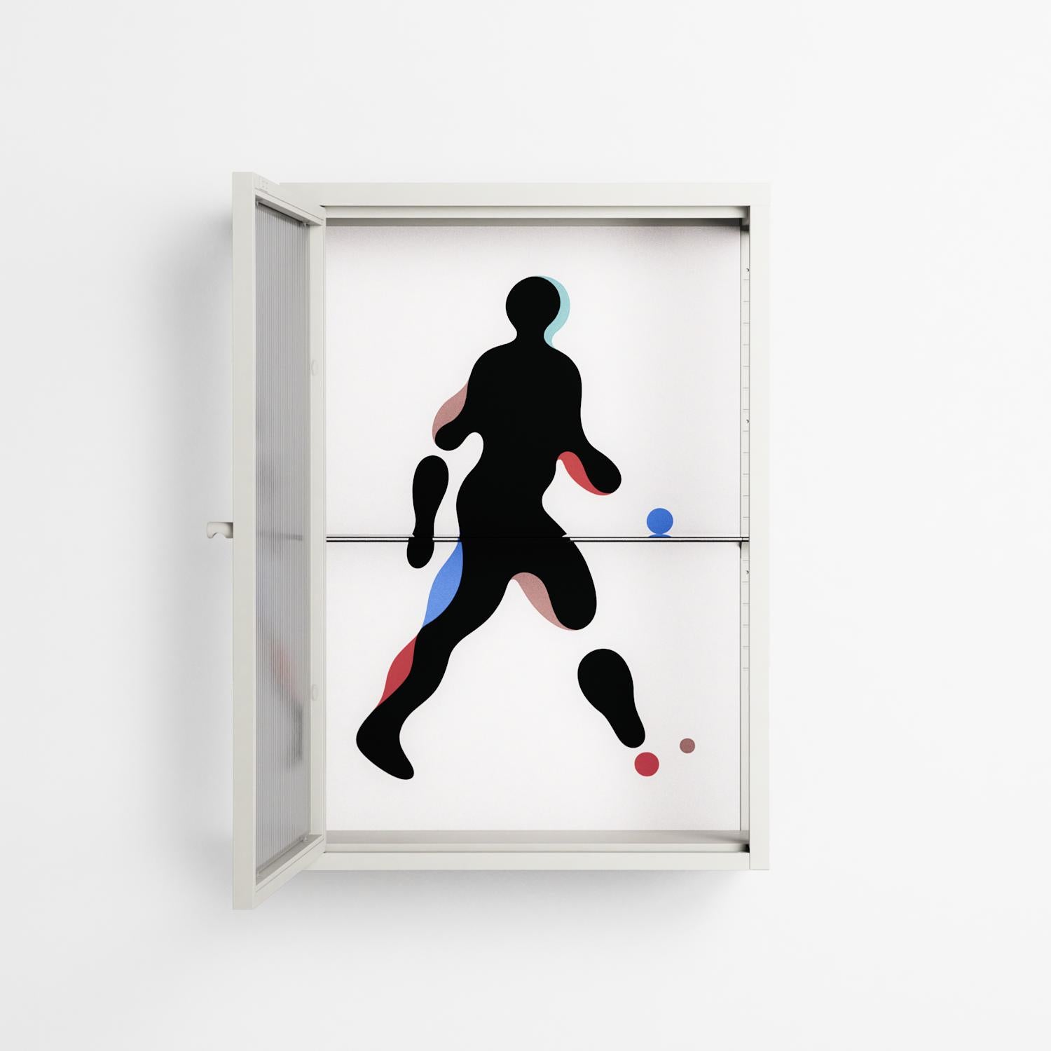 Vitrine pairs artworks by artists, designers, and creatives from around the world with a frame that elevates and displays them in everyday space. The cabinet is built from precision-cut metal with a powder-coated finish — resistant to wear and crafted for stability — making it ideal for both office and home spaces.
