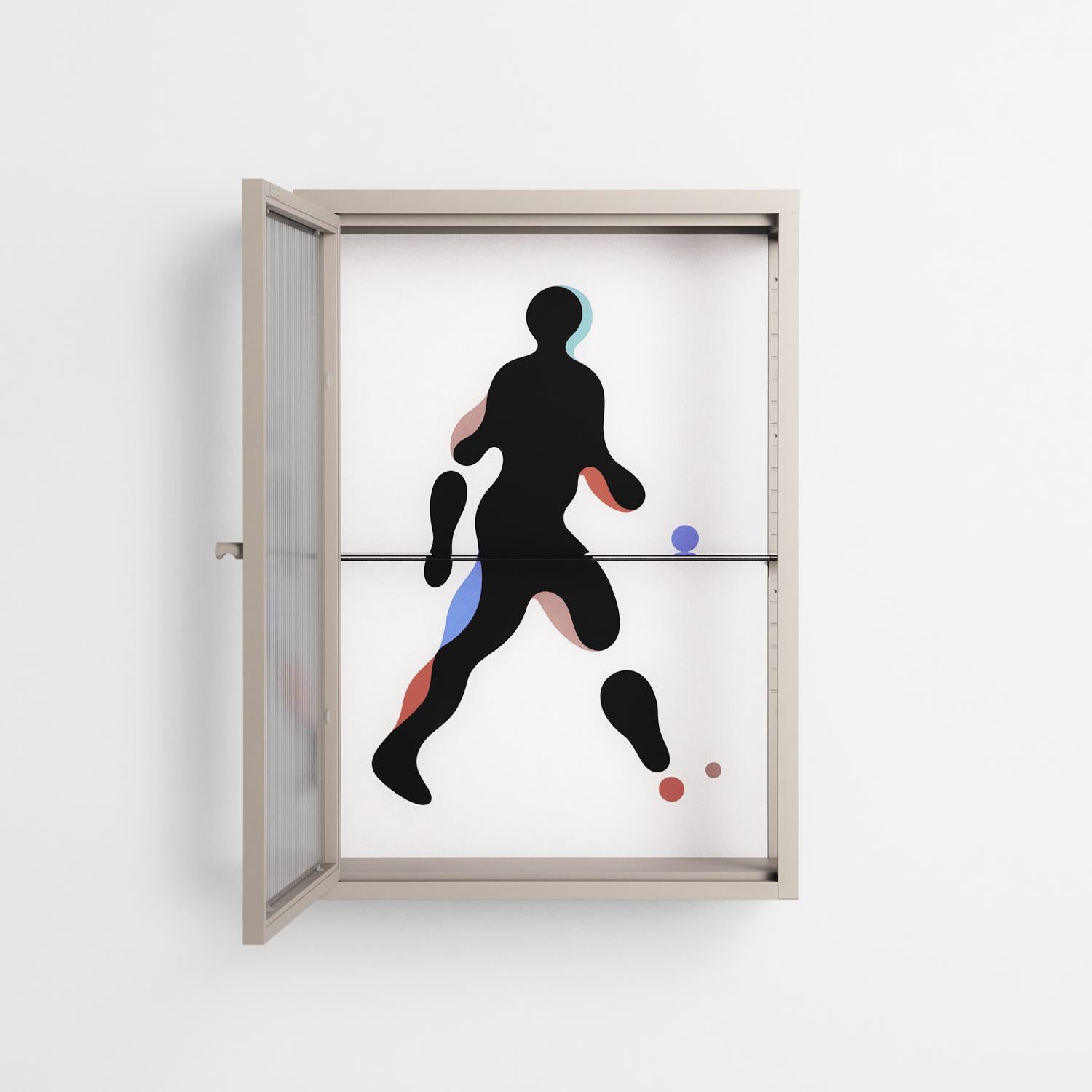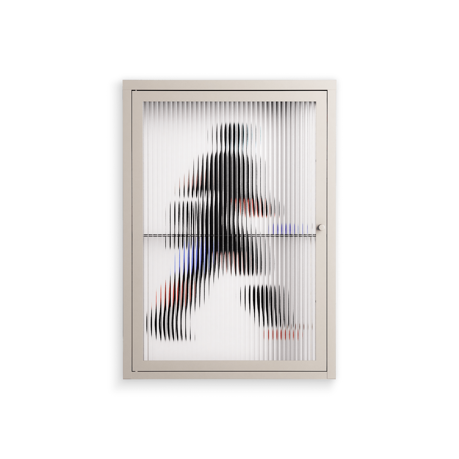 Vitrine pairs artworks by artists, designers, and creatives from around the world with a frame that elevates and displays them in everyday space. The cabinet is built from precision-cut metal with a powder-coated finish — resistant to wear and crafted for stability — making it ideal for both office and home spaces.