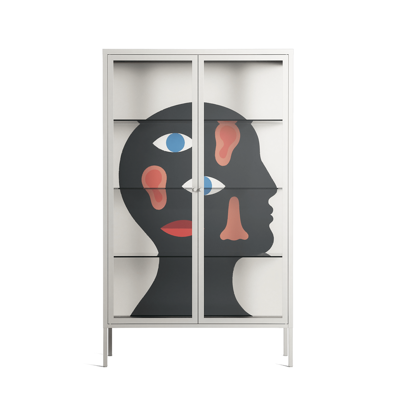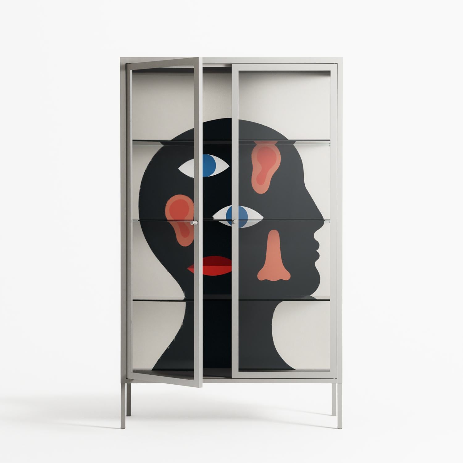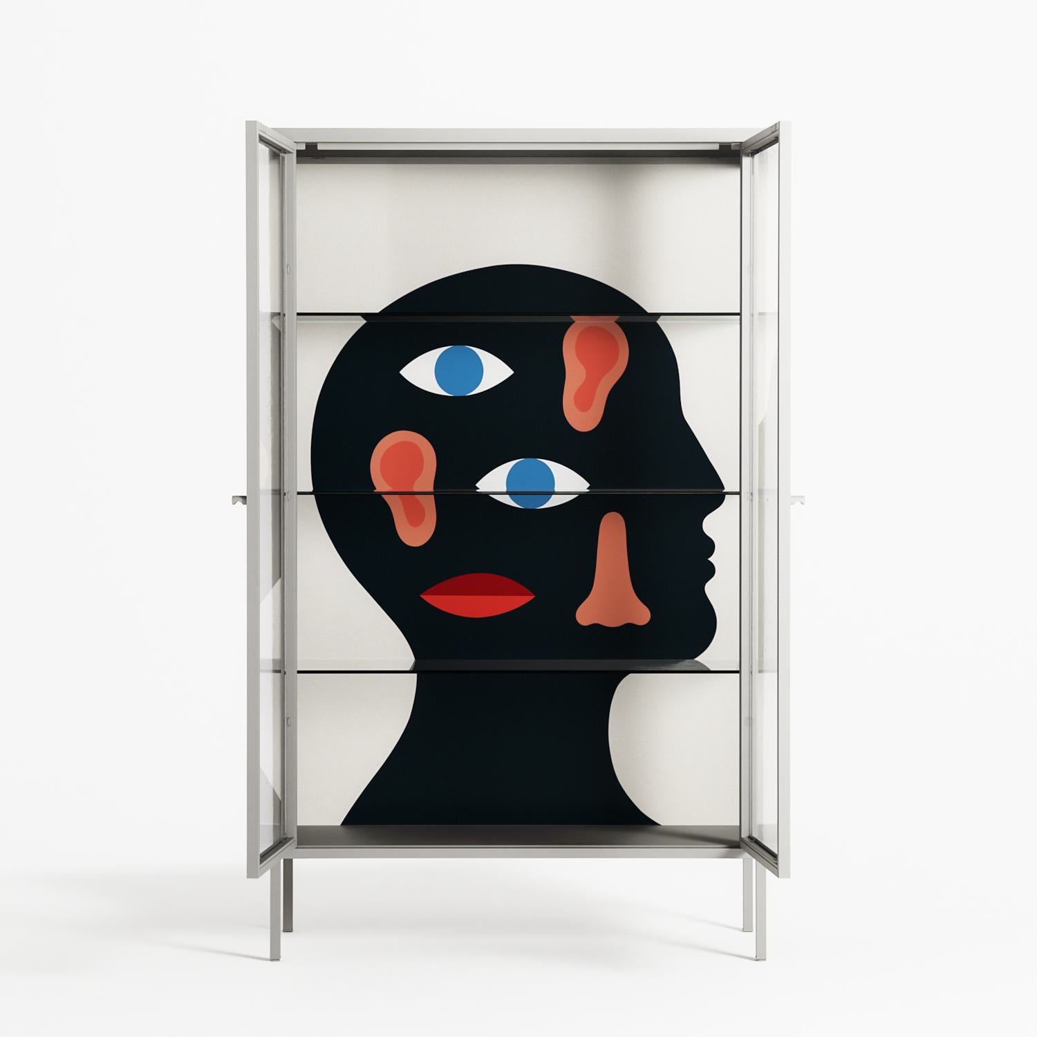 Vitrine pairs artworks by artists, designers, and creatives from around the world with a frame that elevates and displays them in everyday space. The cabinet is built from precision-cut metal with a powder-coated finish — resistant to wear and crafted for stability — making it ideal for both office and home spaces.