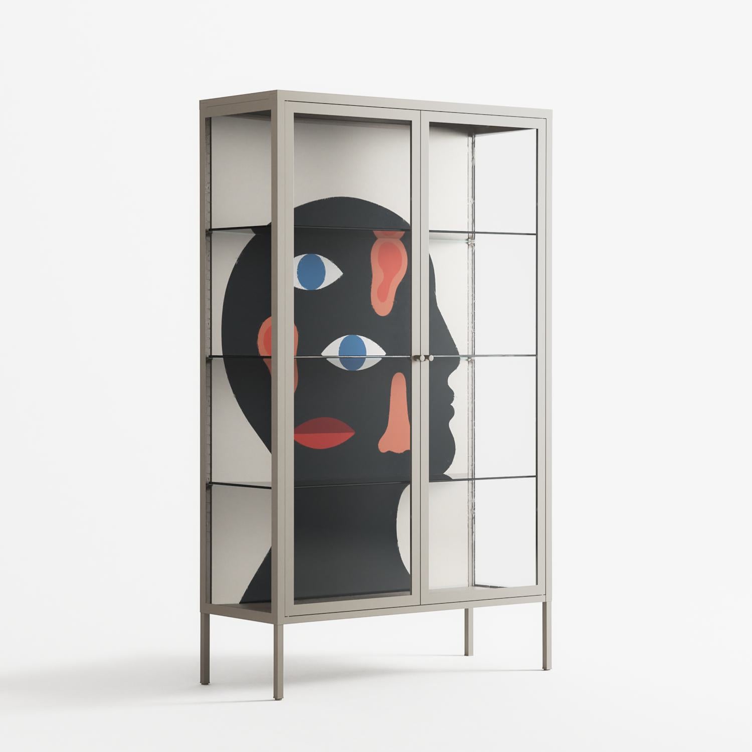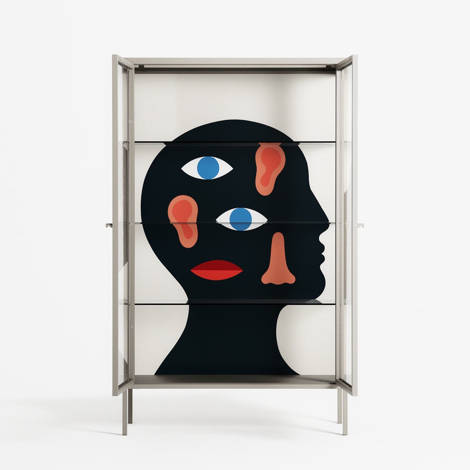 Vitrine pairs artworks by artists, designers, and creatives from around the world with a frame that elevates and displays them in everyday space. The cabinet is built from precision-cut metal with a powder-coated finish — resistant to wear and crafted for stability — making it ideal for both office and home spaces.