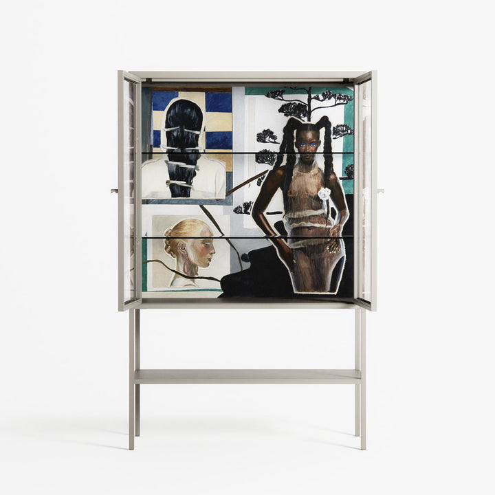 Vitrine pairs artworks by artists, designers, and creatives from around the world with a frame that elevates and displays them in everyday space. The cabinet is built from precision-cut metal with a powder-coated finish — resistant to wear and crafted for stability — making it ideal for both office and home spaces.