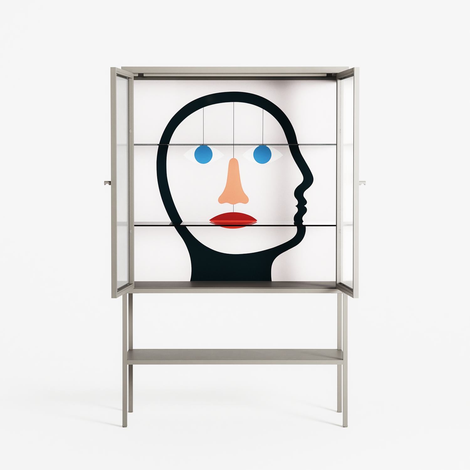 Vitrine pairs artworks by artists, designers, and creatives from around the world with a frame that elevates and displays them in everyday space. The cabinet is built from precision-cut metal with a powder-coated finish — resistant to wear and crafted for stability — making it ideal for both office and home spaces.