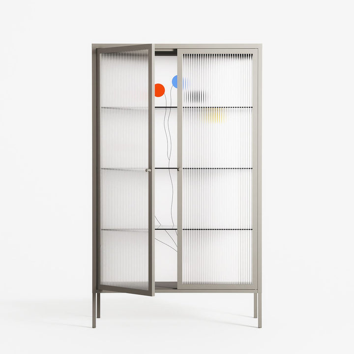 Designed to arrive flat-packed, Vitrine makes assembly straightforward and stress-free. Each component is engineered for a precise fit, allowing you to set it up quickly and easily. Adjustable glass shelves offer complete flexibility, giving you the freedom to compose and recompose your display at will.