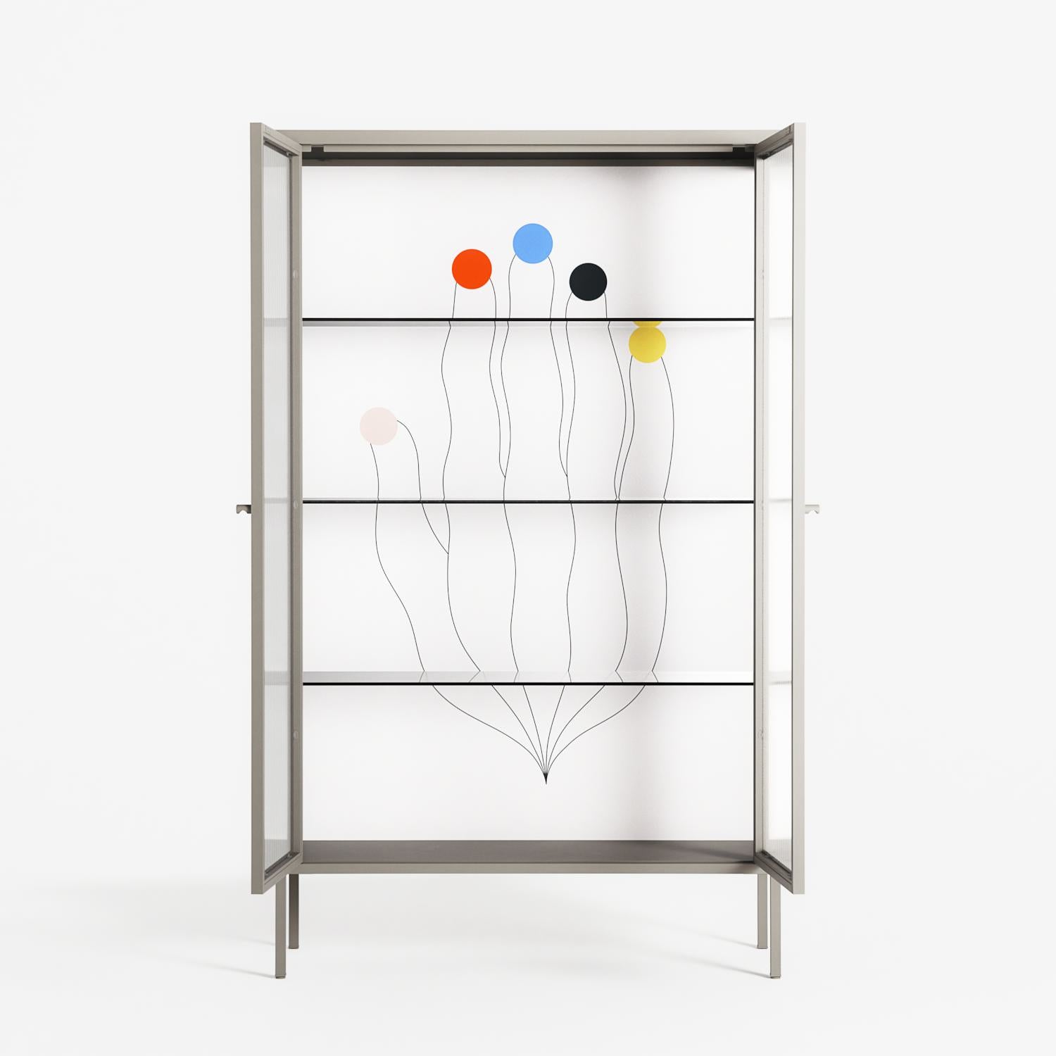 Vitrine pairs artworks by artists, designers, and creatives from around the world with a frame that elevates and displays them in everyday space. The cabinet is built from precision-cut metal with a powder-coated finish — resistant to wear and crafted for stability — making it ideal for both office and home spaces.