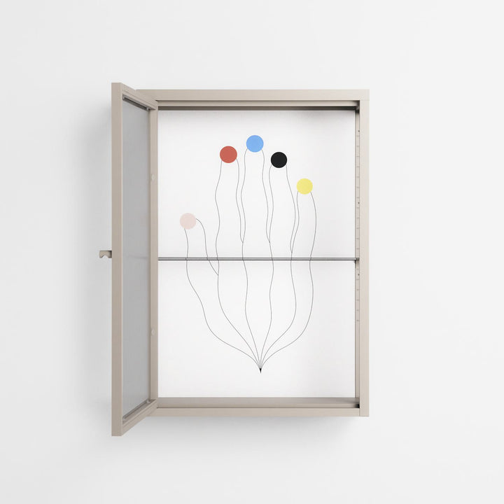 Vitrine pairs artworks by artists, designers, and creatives from around the world with a frame that elevates and displays them in everyday space. The cabinet is built from precision-cut metal with a powder-coated finish — resistant to wear and crafted for stability — making it ideal for both office and home spaces.