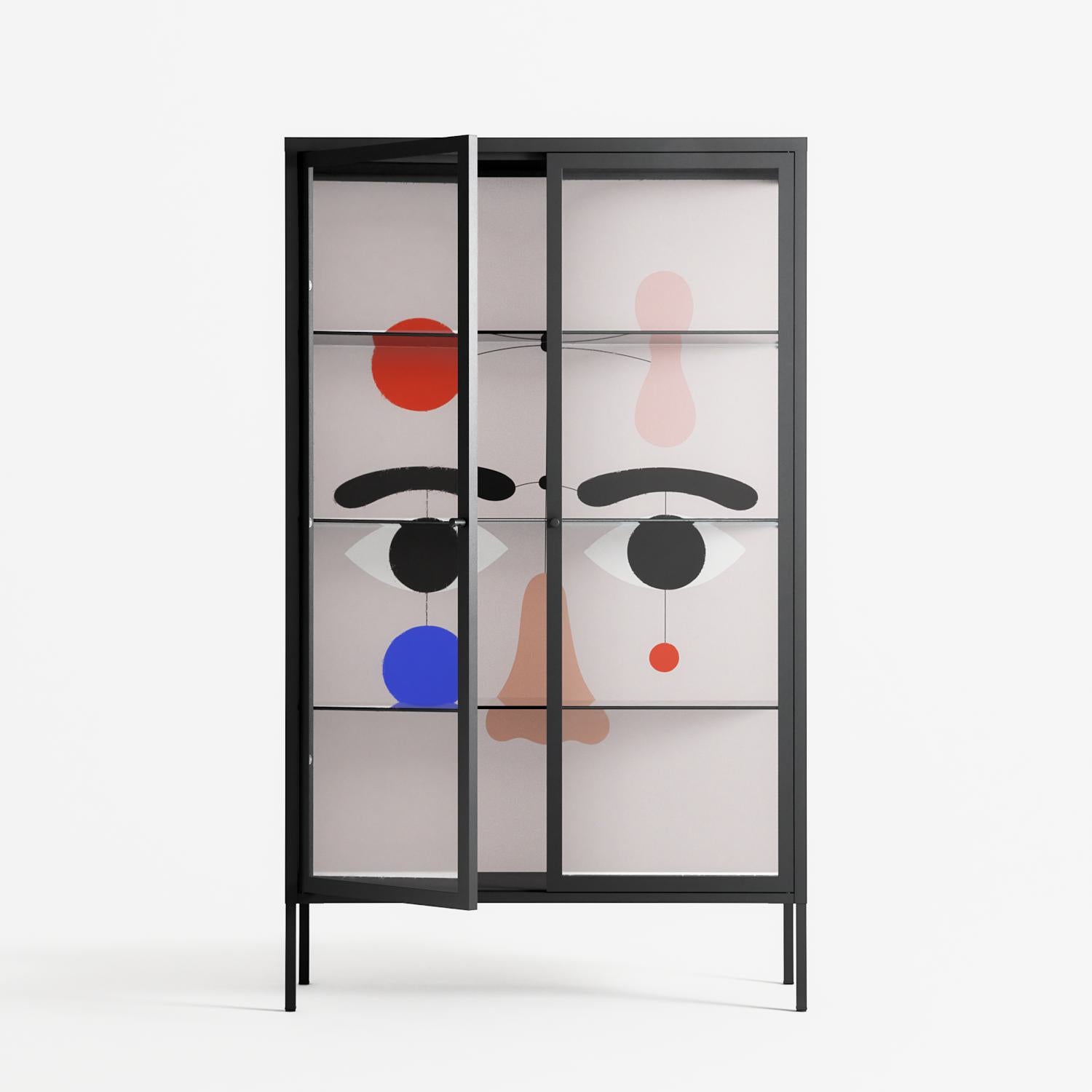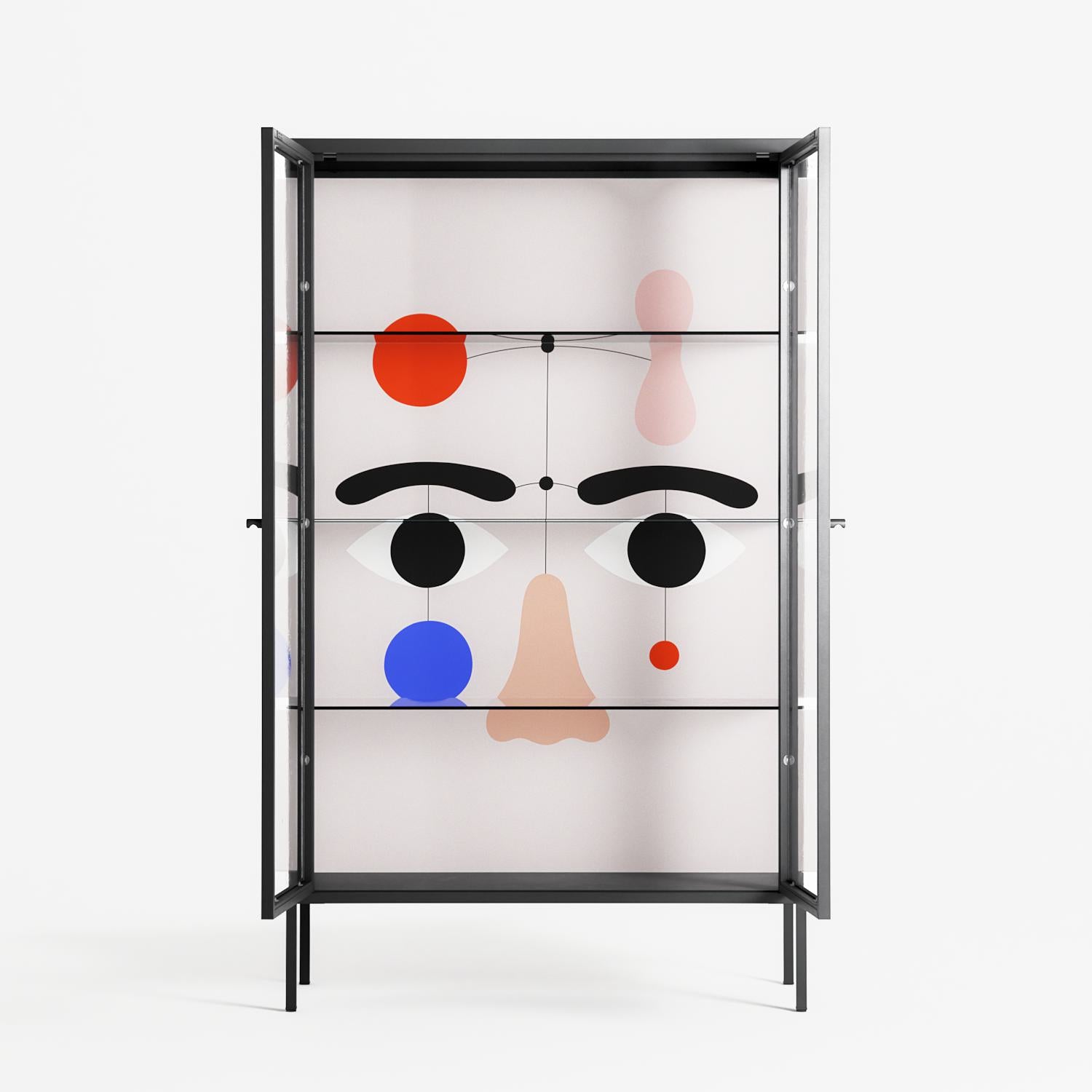 Vitrine pairs artworks by artists, designers, and creatives from around the world with a frame that elevates and displays them in everyday space. The cabinet is built from precision-cut metal with a powder-coated finish — resistant to wear and crafted for stability — making it ideal for both office and home spaces.