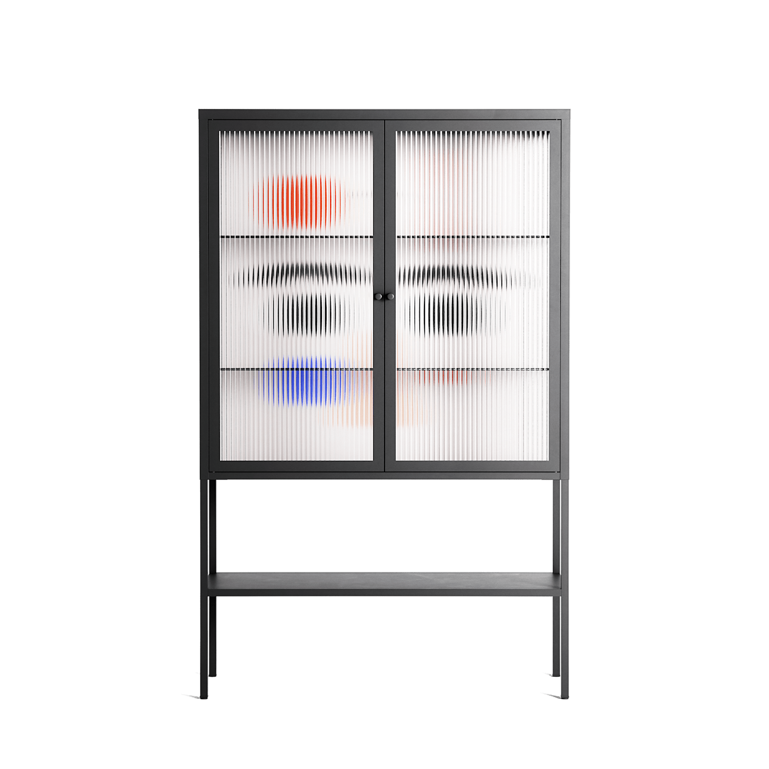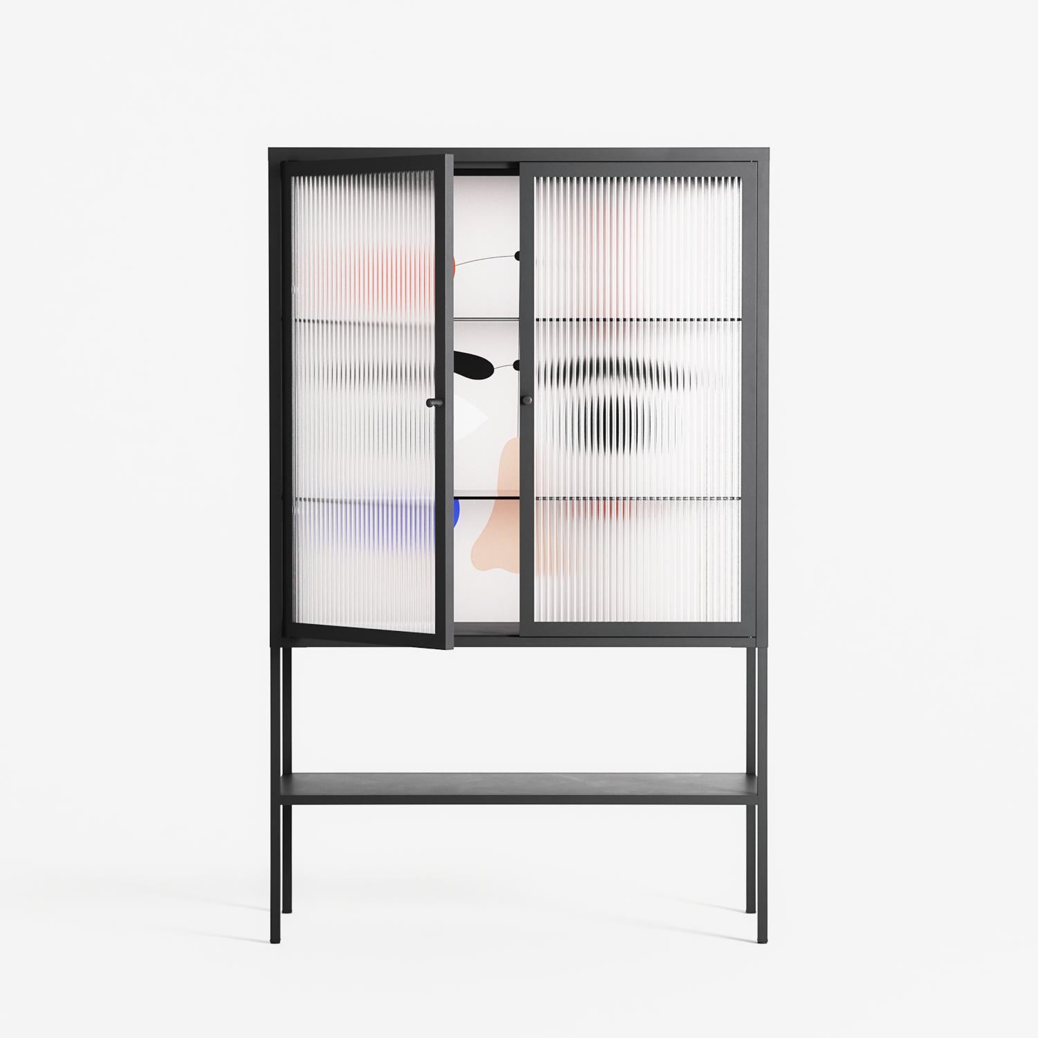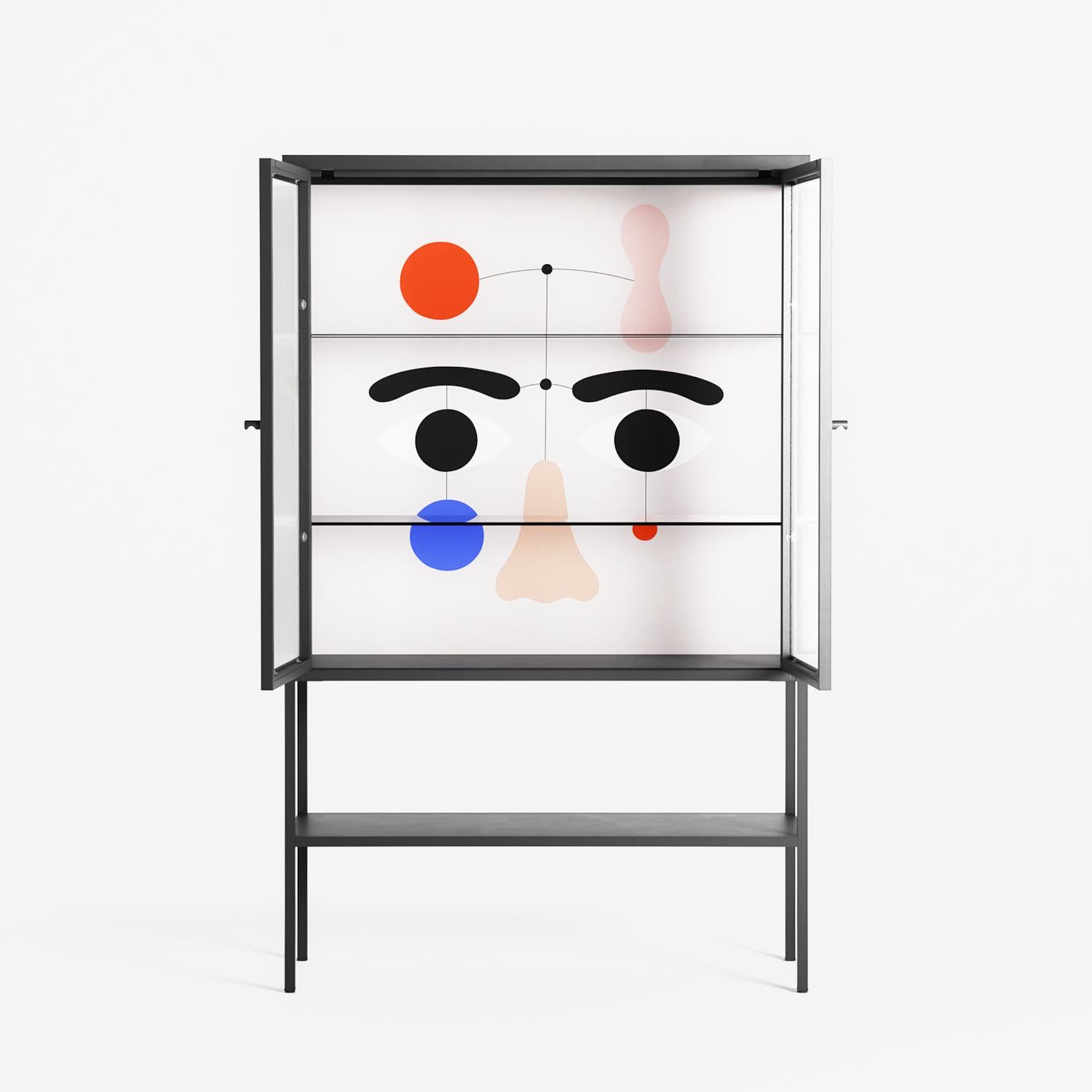 Vitrine pairs artworks by artists, designers, and creatives from around the world with a frame that elevates and displays them in everyday space. The cabinet is built from precision-cut metal with a powder-coated finish — resistant to wear and crafted for stability — making it ideal for both office and home spaces.