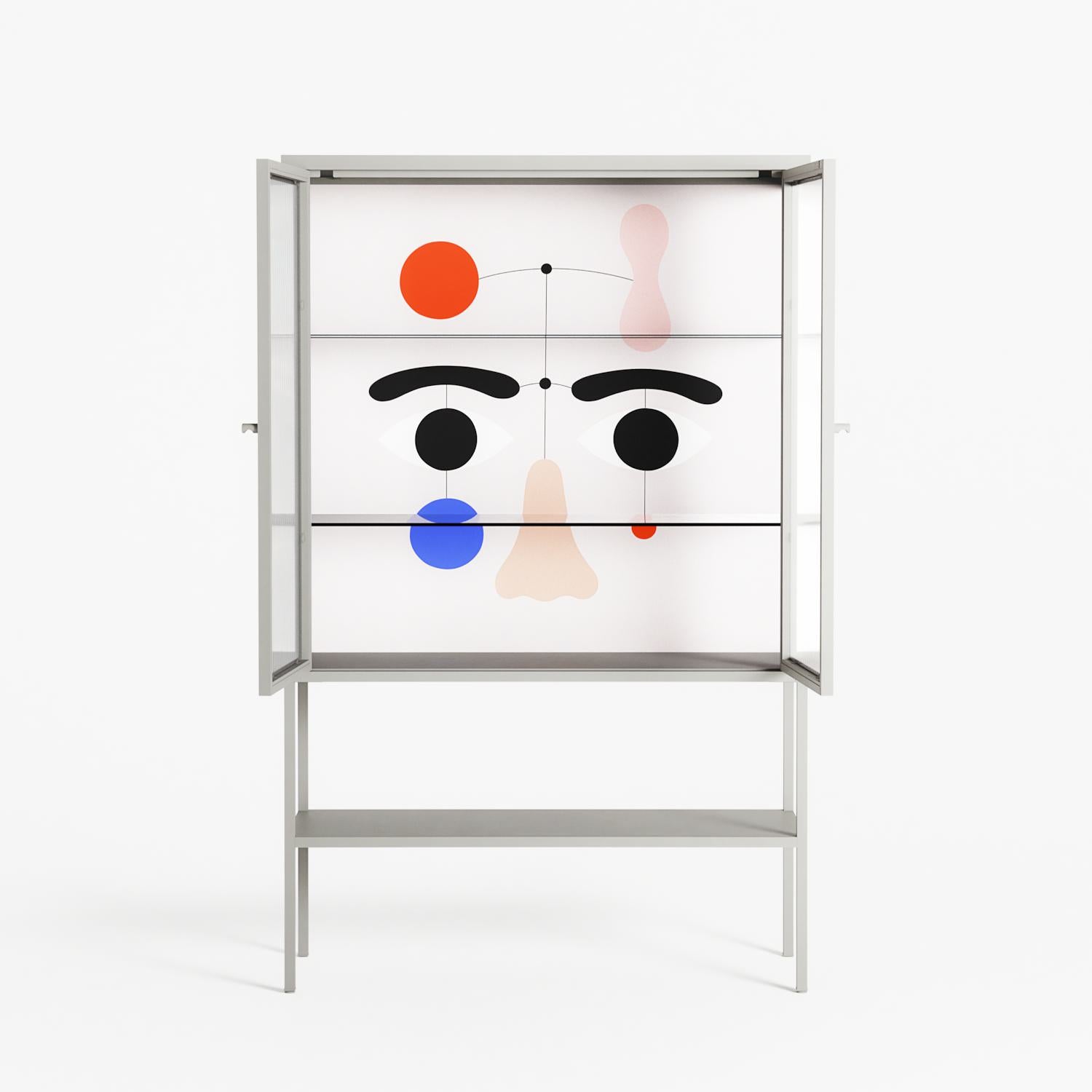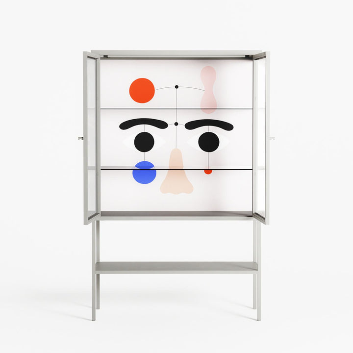 Vitrine pairs artworks by artists, designers, and creatives from around the world with a frame that elevates and displays them in everyday space. The cabinet is built from precision-cut metal with a powder-coated finish — resistant to wear and crafted for stability — making it ideal for both office and home spaces.
