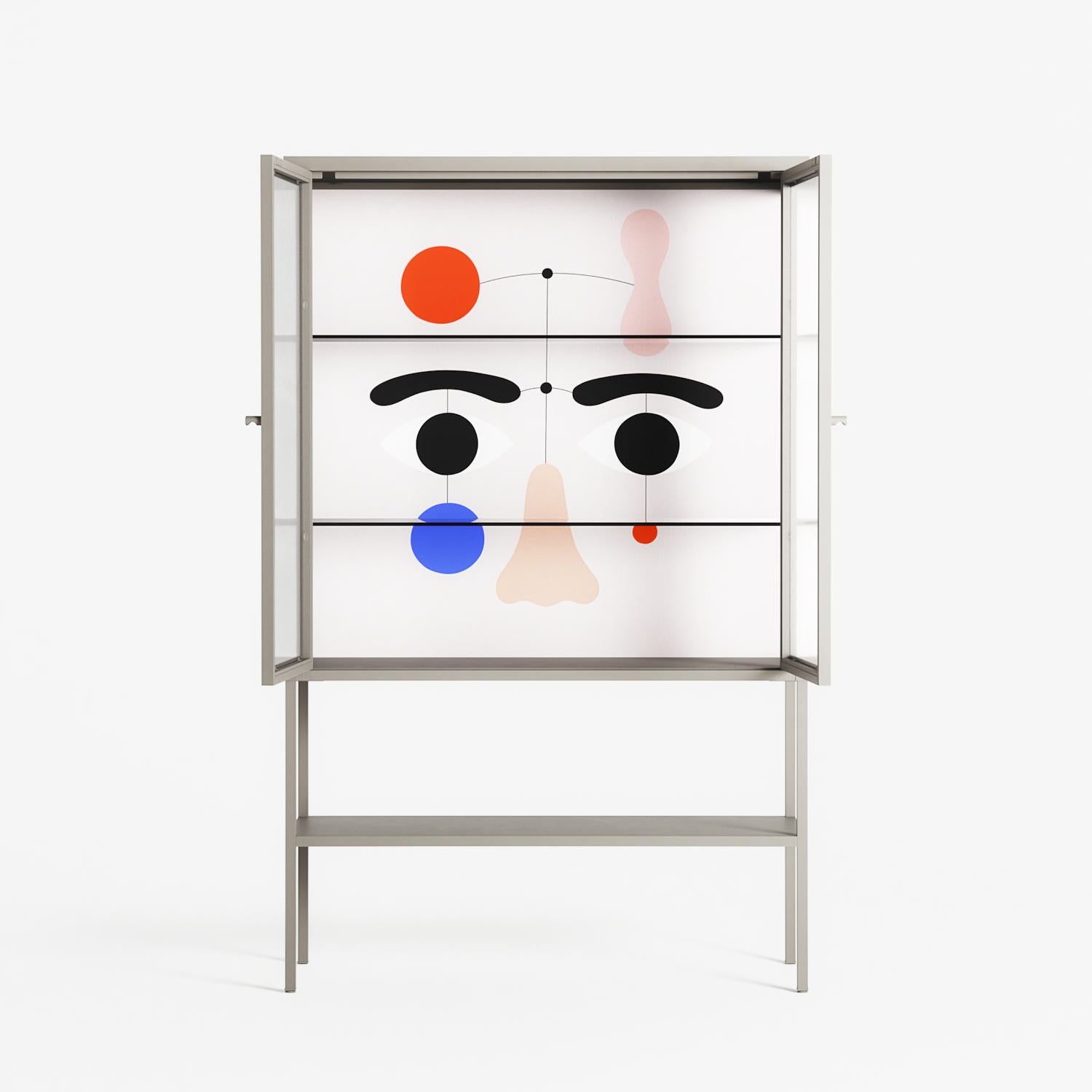 Vitrine pairs artworks by artists, designers, and creatives from around the world with a frame that elevates and displays them in everyday space. The cabinet is built from precision-cut metal with a powder-coated finish — resistant to wear and crafted for stability — making it ideal for both office and home spaces.