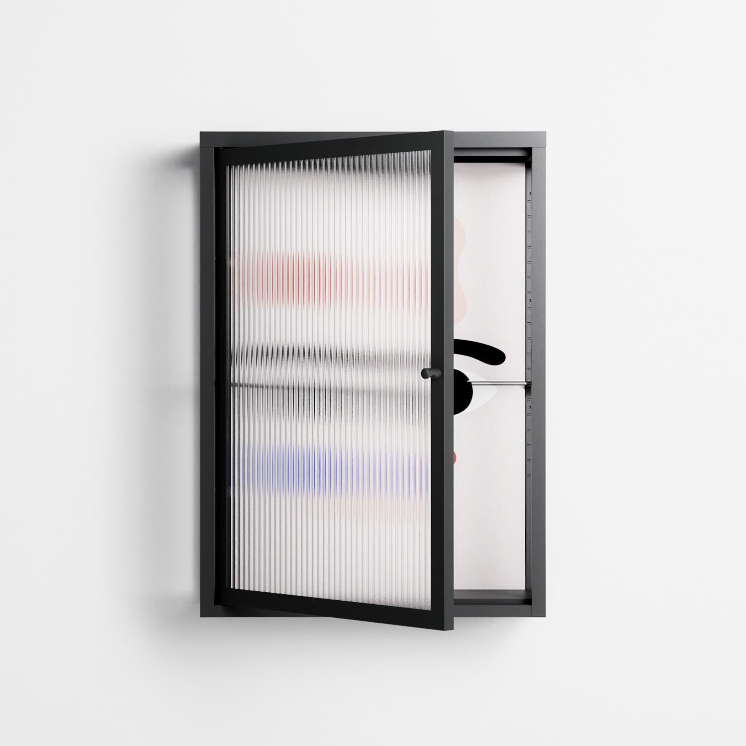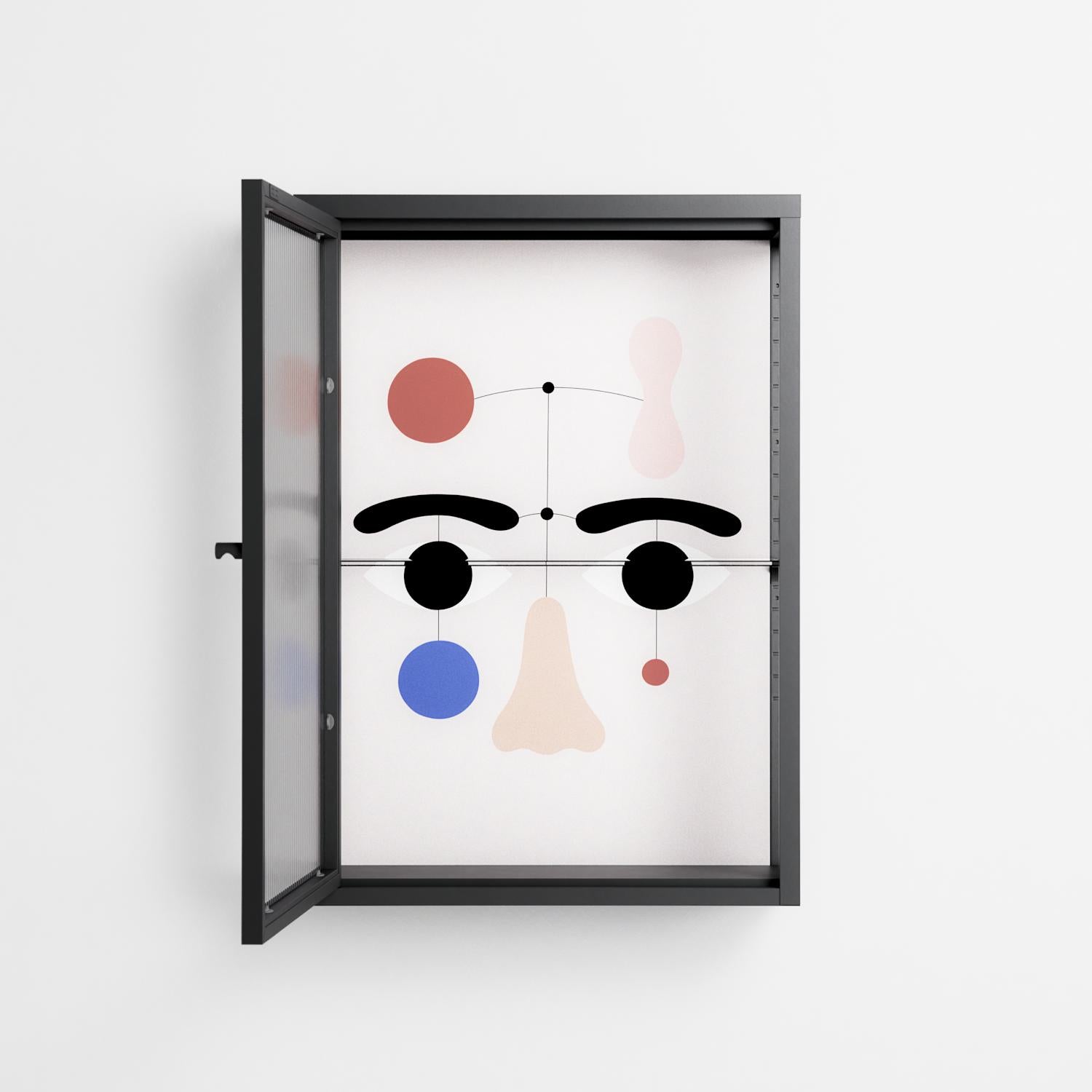 Vitrine pairs artworks by artists, designers, and creatives from around the world with a frame that elevates and displays them in everyday space. The cabinet is built from precision-cut metal with a powder-coated finish — resistant to wear and crafted for stability — making it ideal for both office and home spaces.