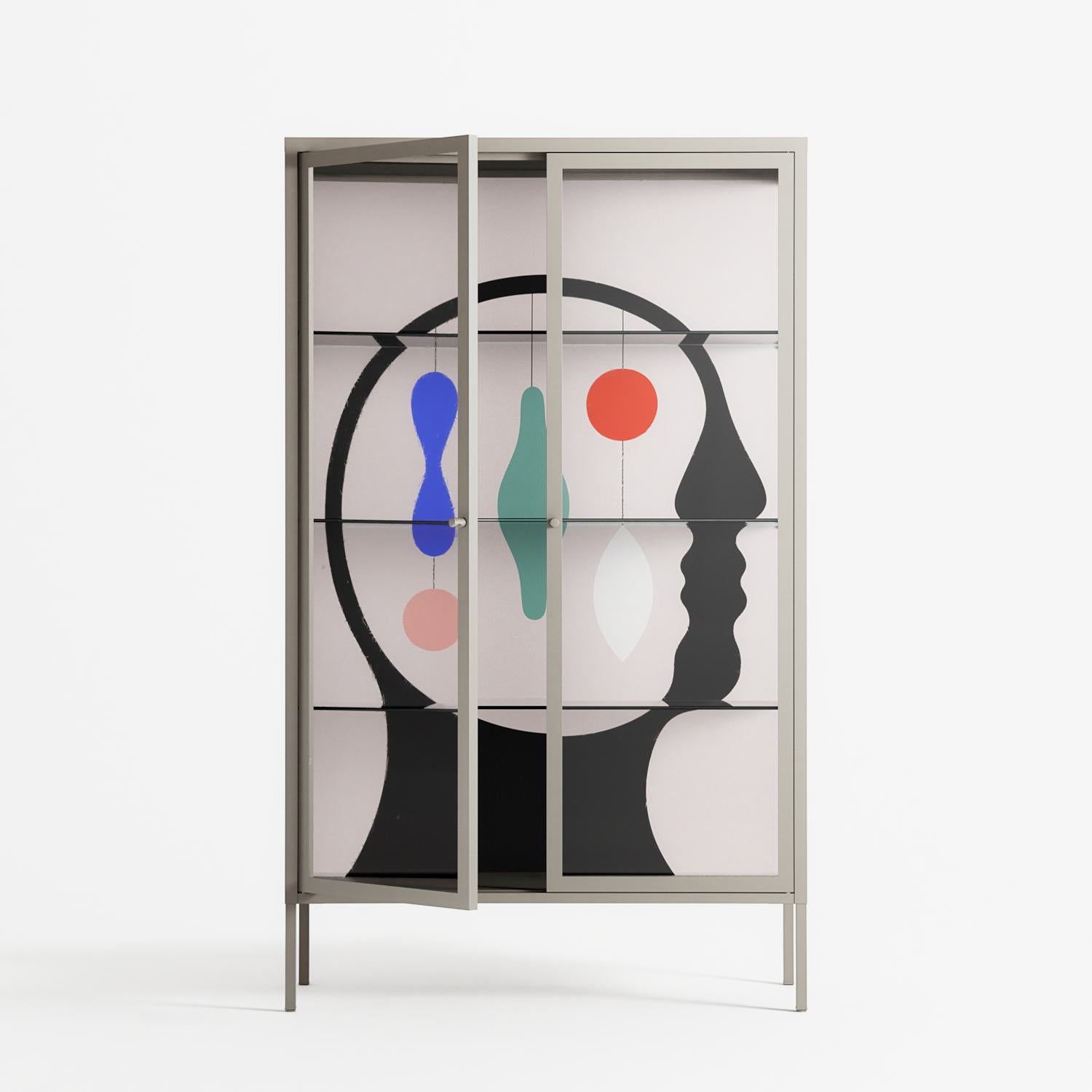Vitrine pairs artworks by artists, designers, and creatives from around the world with a frame that elevates and displays them in everyday space. The cabinet is built from precision-cut metal with a powder-coated finish — resistant to wear and crafted for stability — making it ideal for both office and home spaces.