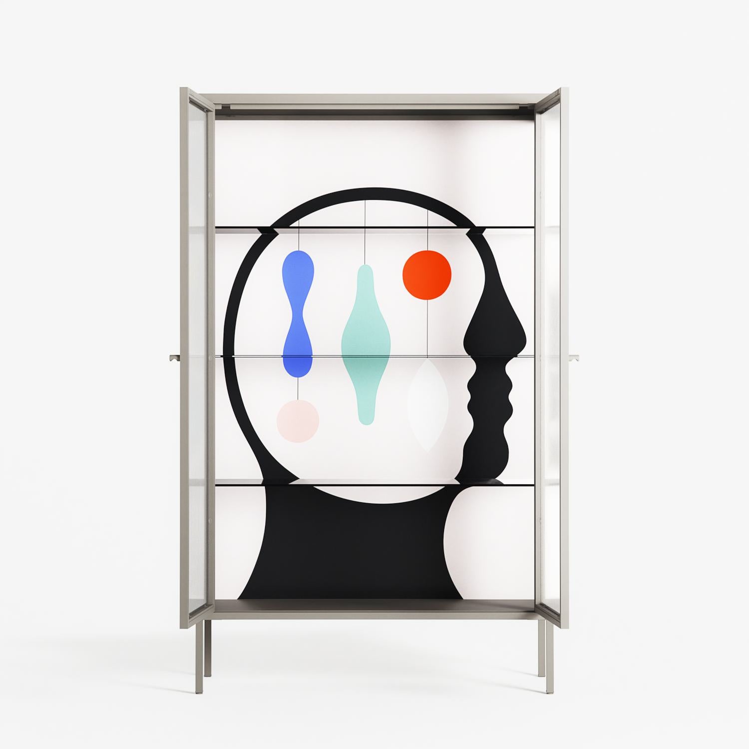 Vitrine pairs artworks by artists, designers, and creatives from around the world with a frame that elevates and displays them in everyday space. The cabinet is built from precision-cut metal with a powder-coated finish — resistant to wear and crafted for stability — making it ideal for both office and home spaces.