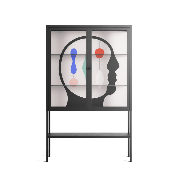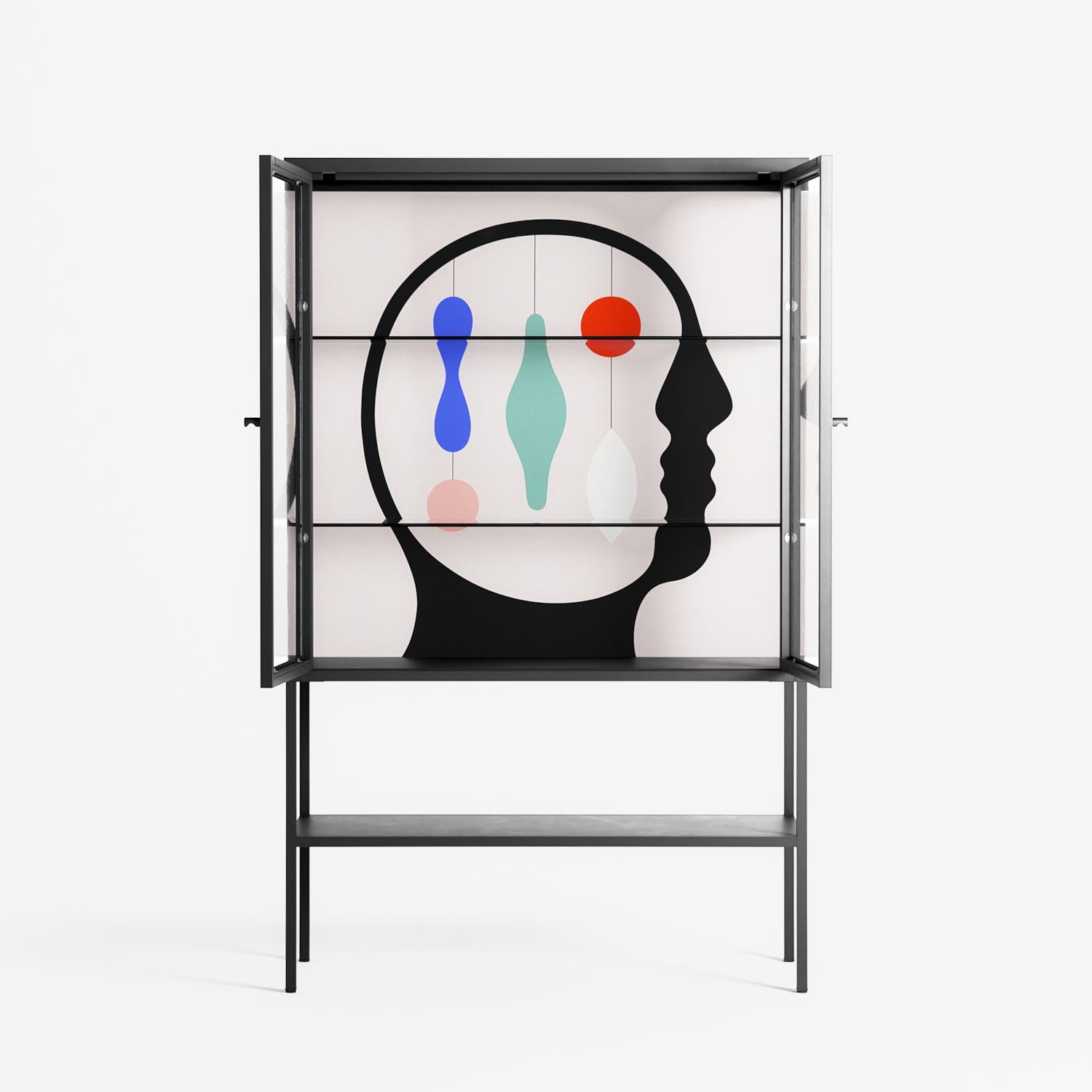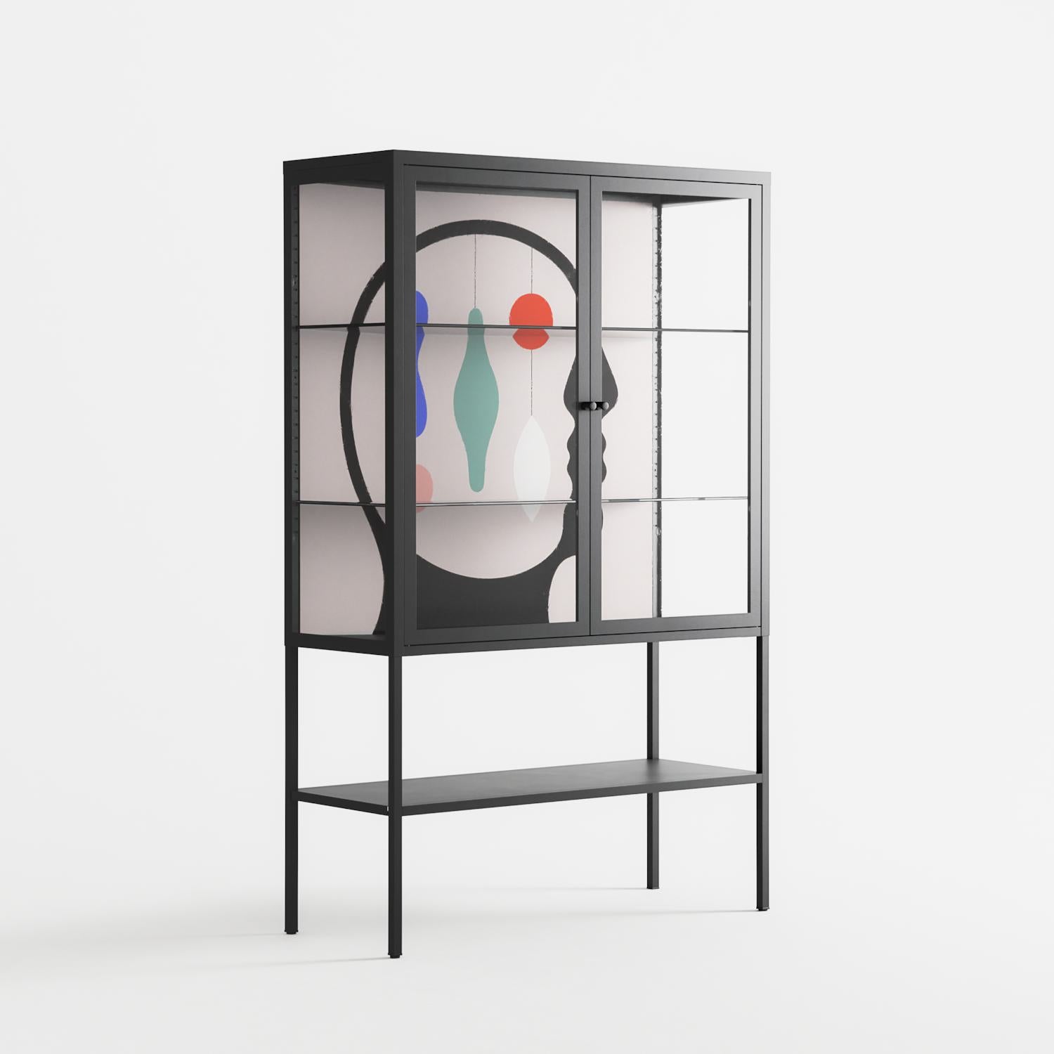 Vitrine pairs artworks by artists, designers, and creatives from around the world with a frame that elevates and displays them in everyday space. The cabinet is built from precision-cut metal with a powder-coated finish — resistant to wear and crafted for stability — making it ideal for both office and home spaces.