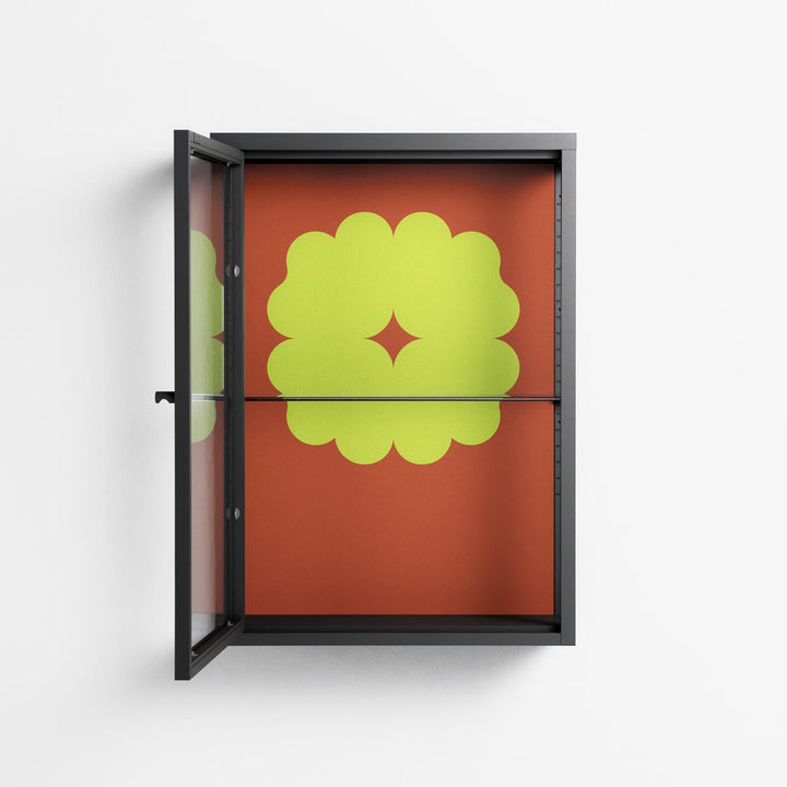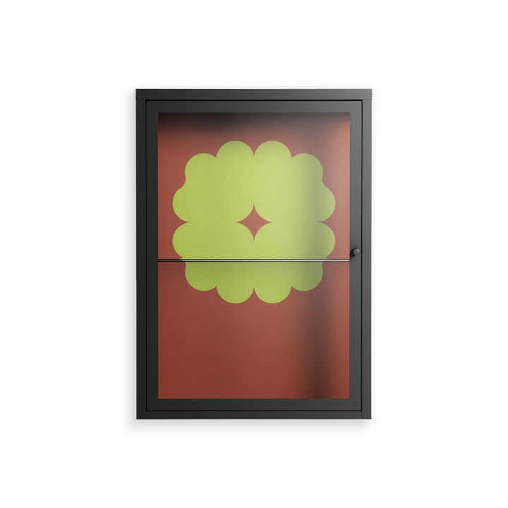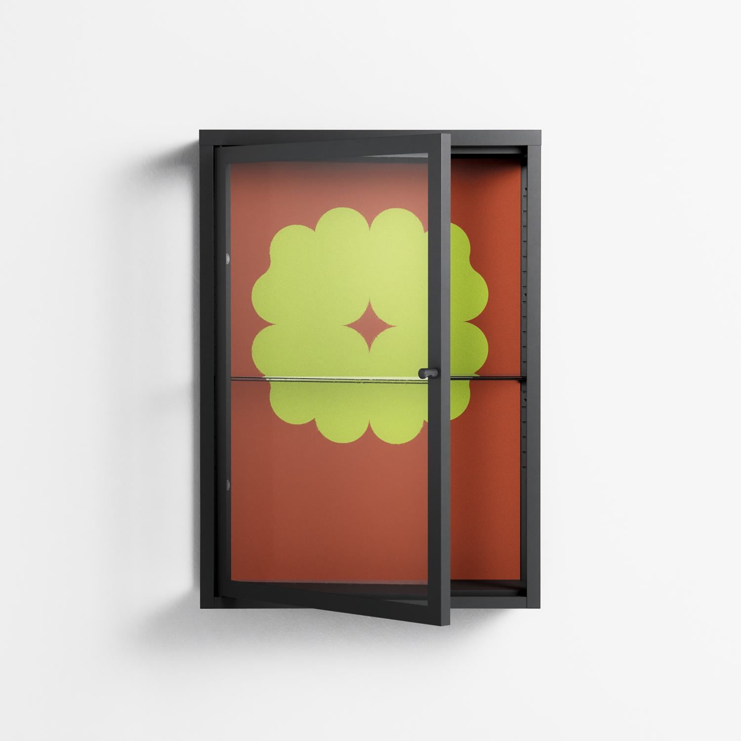 Vitrine pairs artworks by artists, designers, and creatives from around the world with a frame that elevates and displays them in everyday space. The cabinet is built from precision-cut metal with a powder-coated finish — resistant to wear and crafted for stability — making it ideal for both office and home spaces.