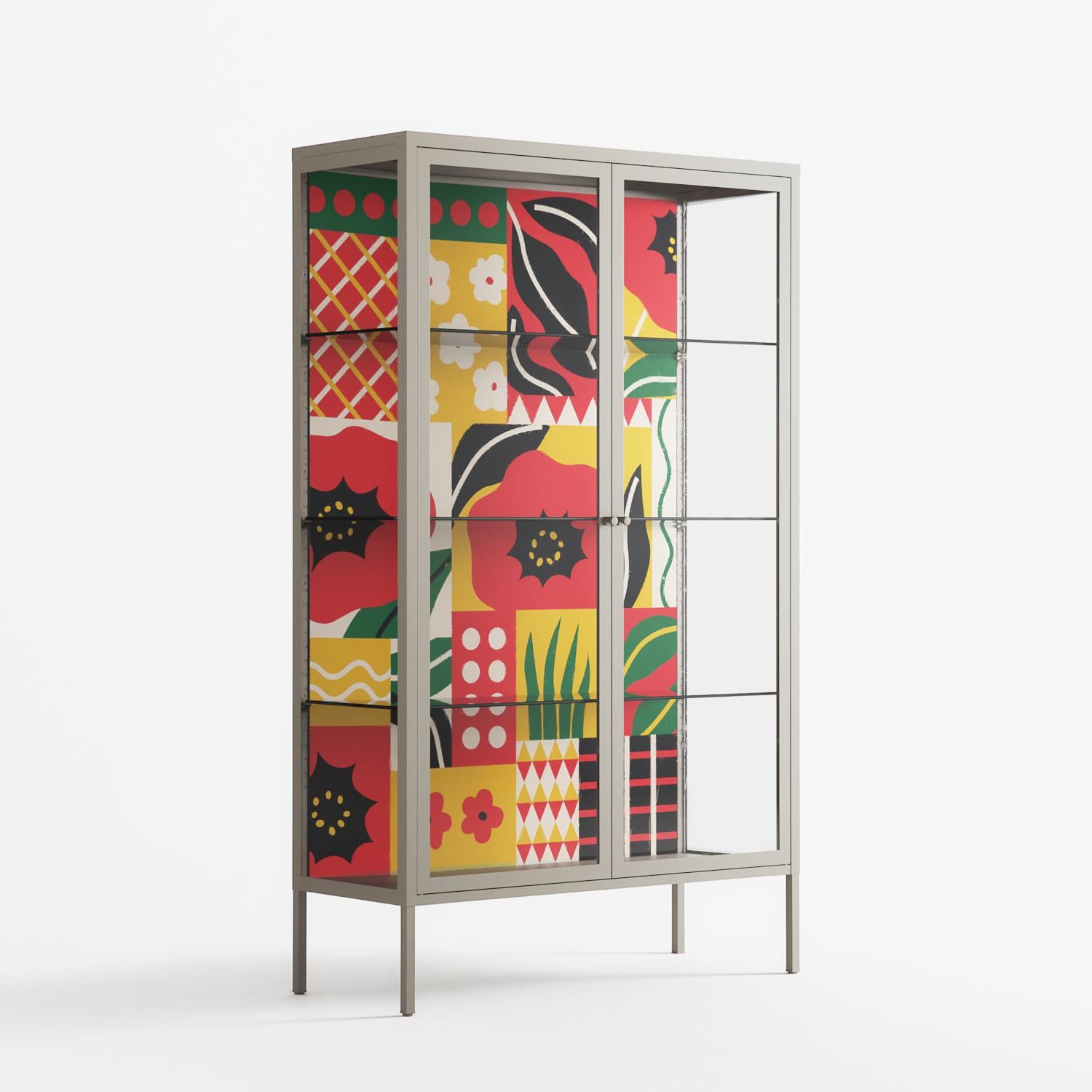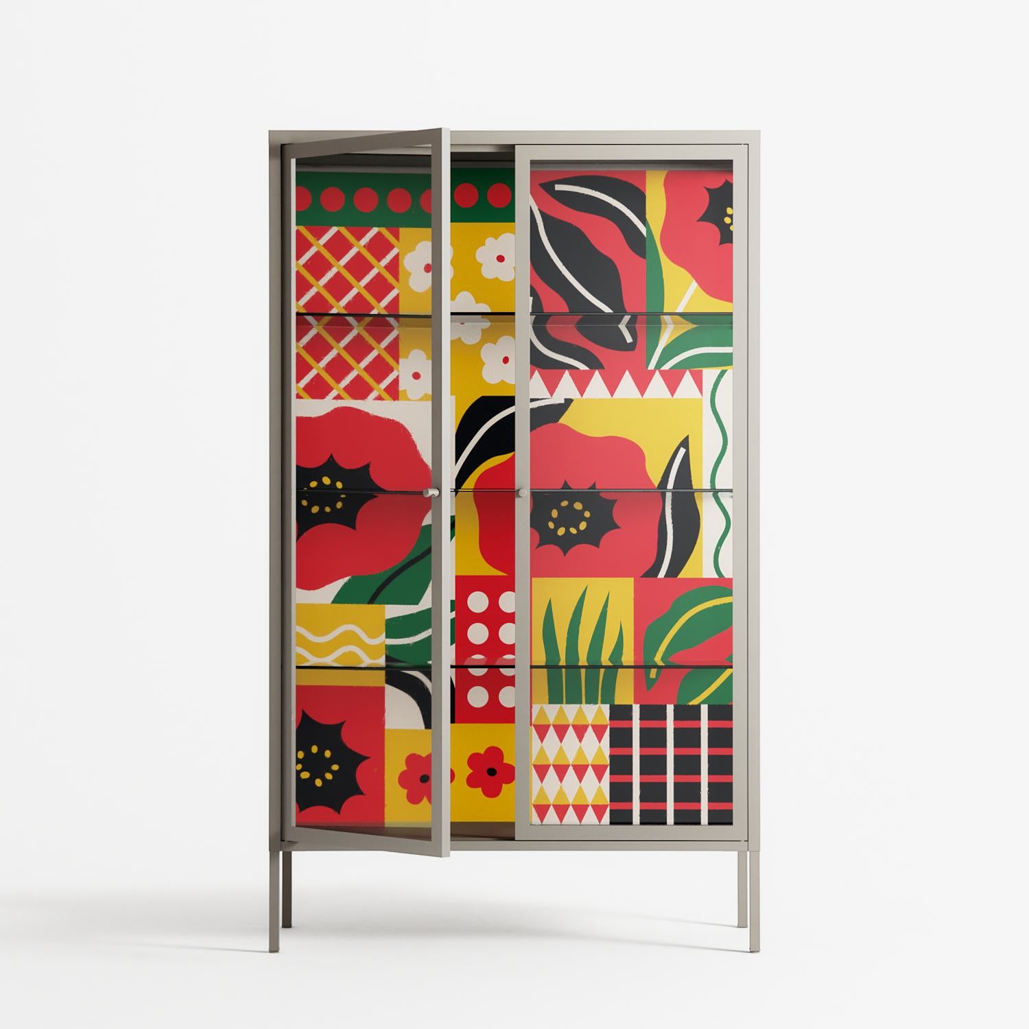 Vitrine pairs artworks by artists, designers, and creatives from around the world with a frame that elevates and displays them in everyday space. The cabinet is built from precision-cut metal with a powder-coated finish — resistant to wear and crafted for stability — making it ideal for both office and home spaces.