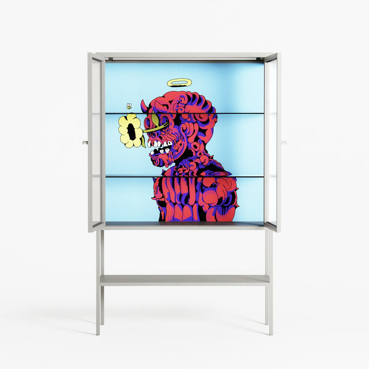 Vitrine pairs artworks by artists, designers, and creatives from around the world with a frame that elevates and displays them in everyday space. The cabinet is built from precision-cut metal with a powder-coated finish — resistant to wear and crafted for stability — making it ideal for both office and home spaces.