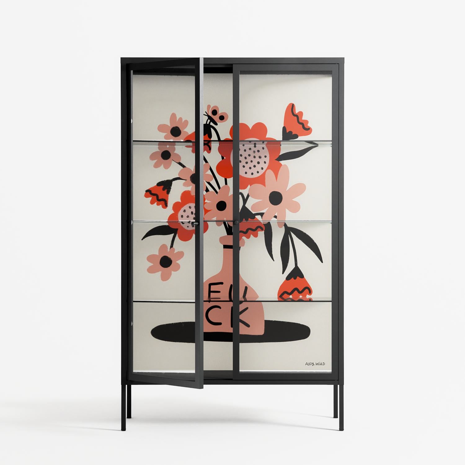 Vitrine pairs artworks by artists, designers, and creatives from around the world with a frame that elevates and displays them in everyday space. The cabinet is built from precision-cut metal with a powder-coated finish — resistant to wear and crafted for stability — making it ideal for both office and home spaces.