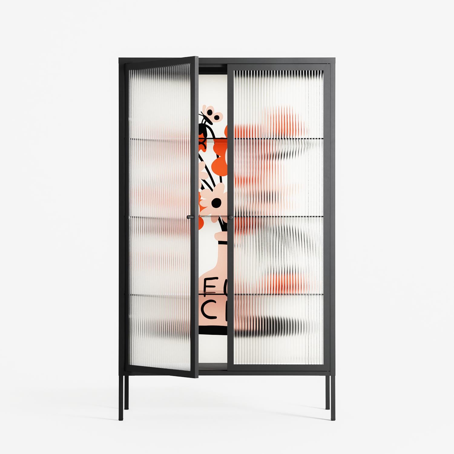 Vitrine pairs artworks by artists, designers, and creatives from around the world with a frame that elevates and displays them in everyday space. The cabinet is built from precision-cut metal with a powder-coated finish — resistant to wear and crafted for stability — making it ideal for both office and home spaces.
